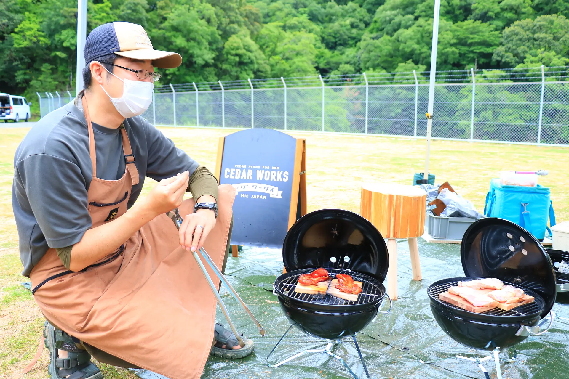 天然乾燥させた杉を板ごと焼き上げる新しいカタチのBBQがこの「プランクBBQ」。