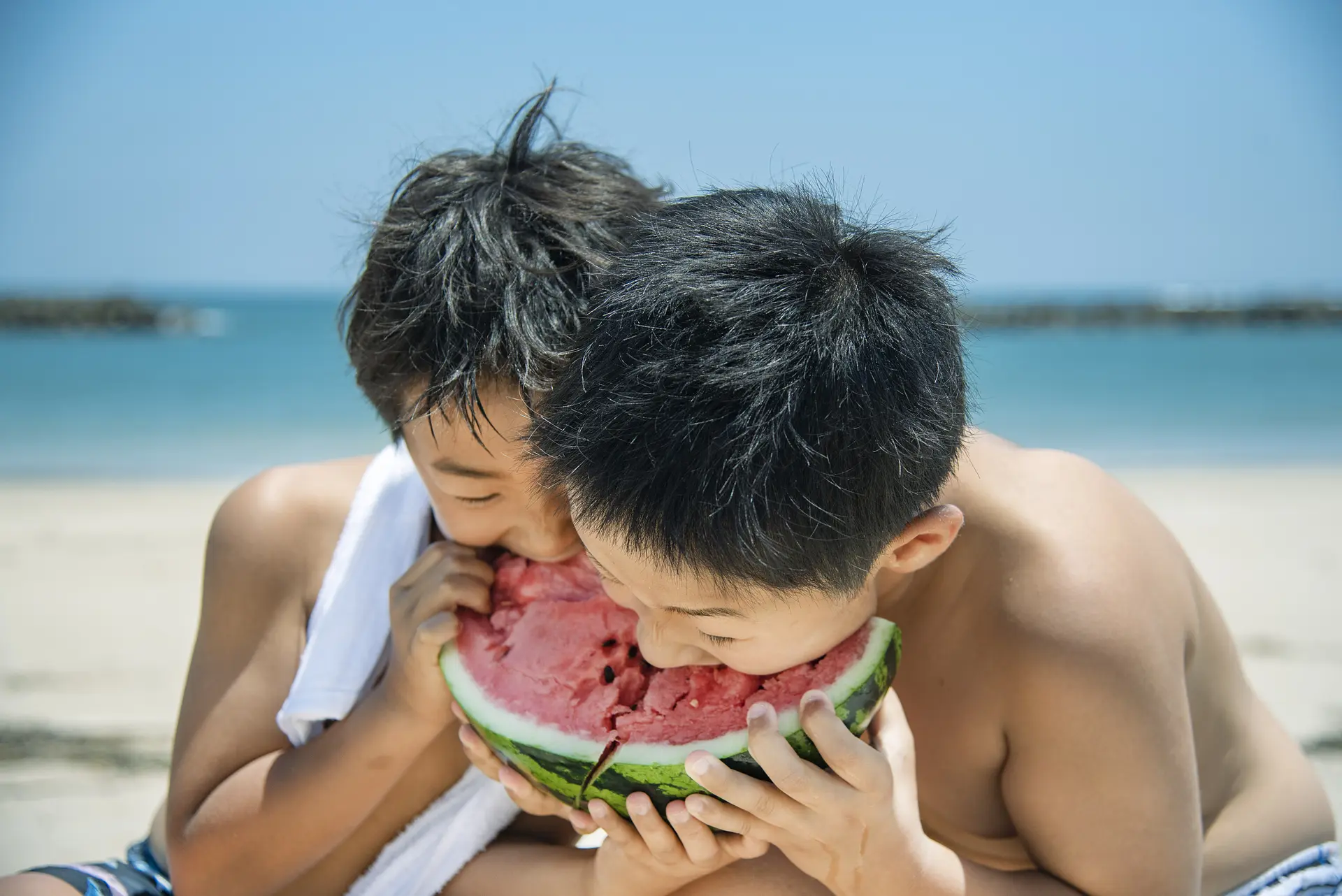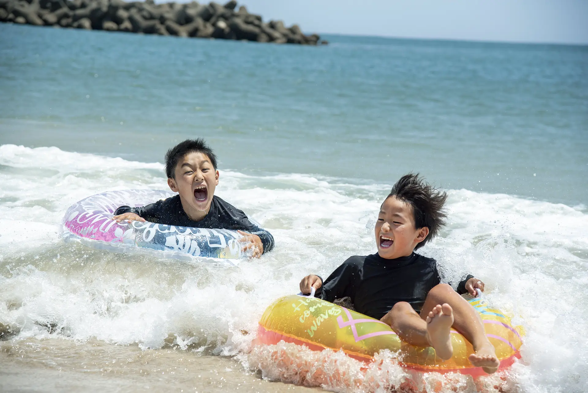子どもたちと一緒に今年初めての海水浴を心ゆくまで満喫♩