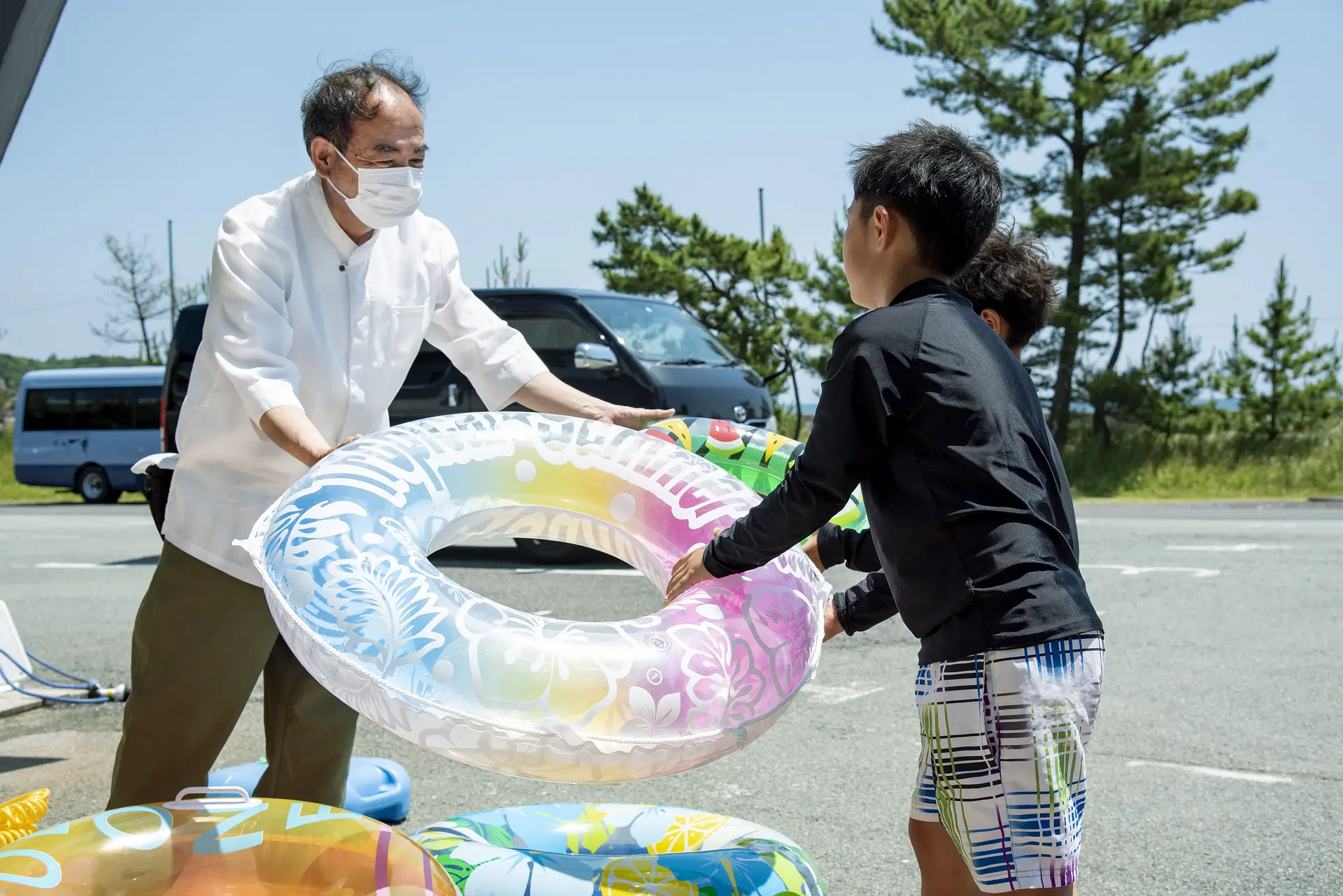 ④浮き輪やパラソル、ゴザの無料レンタルあり!