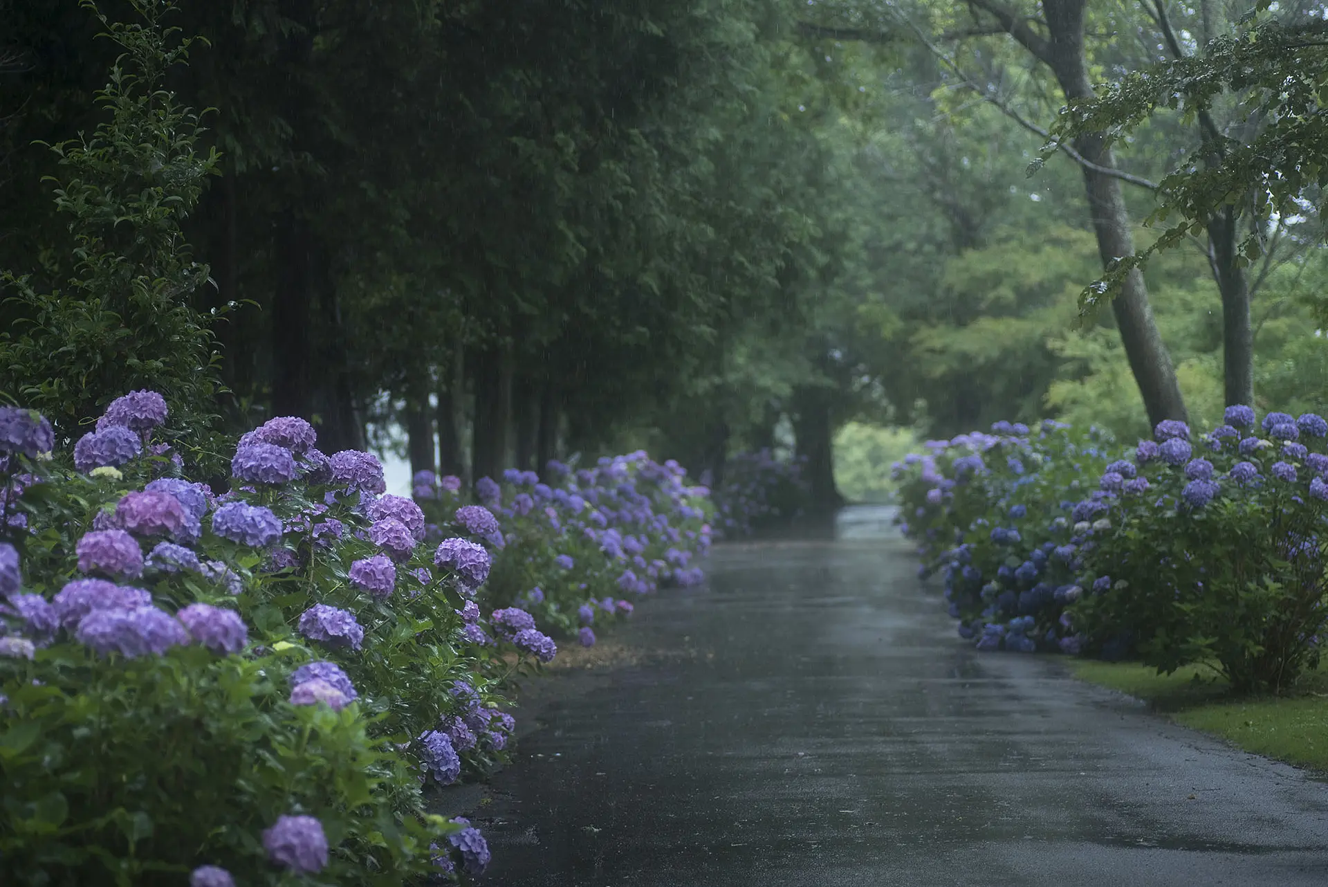 晴れの日でも雨の日でも美しいアジサイが待っています。