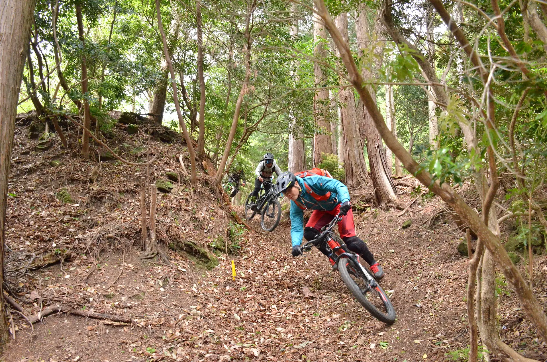 青山高原から榊原までの森の中をマウンテンバイクで駆け降りるトレイルガイドツアー。