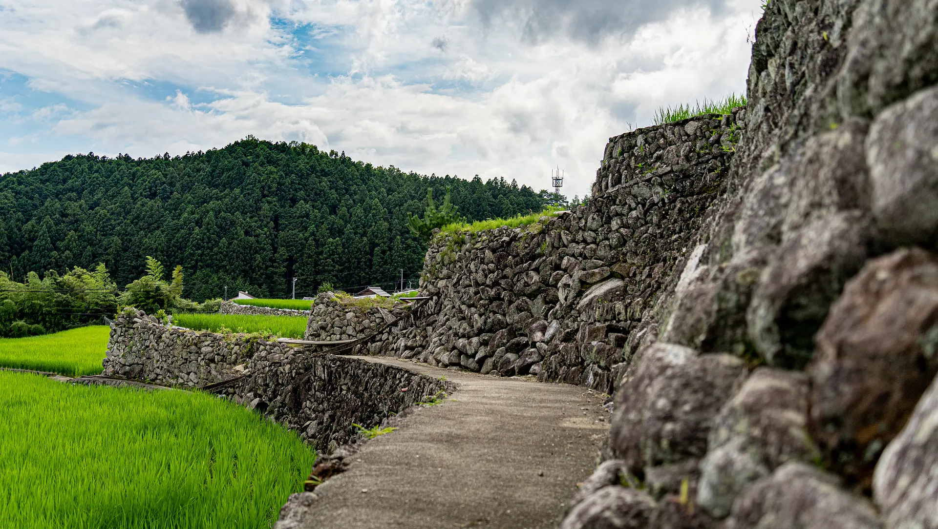 深野のだんだん田は、石堤でできた珍しい棚田で「日本棚田百選」にも選ばれています。