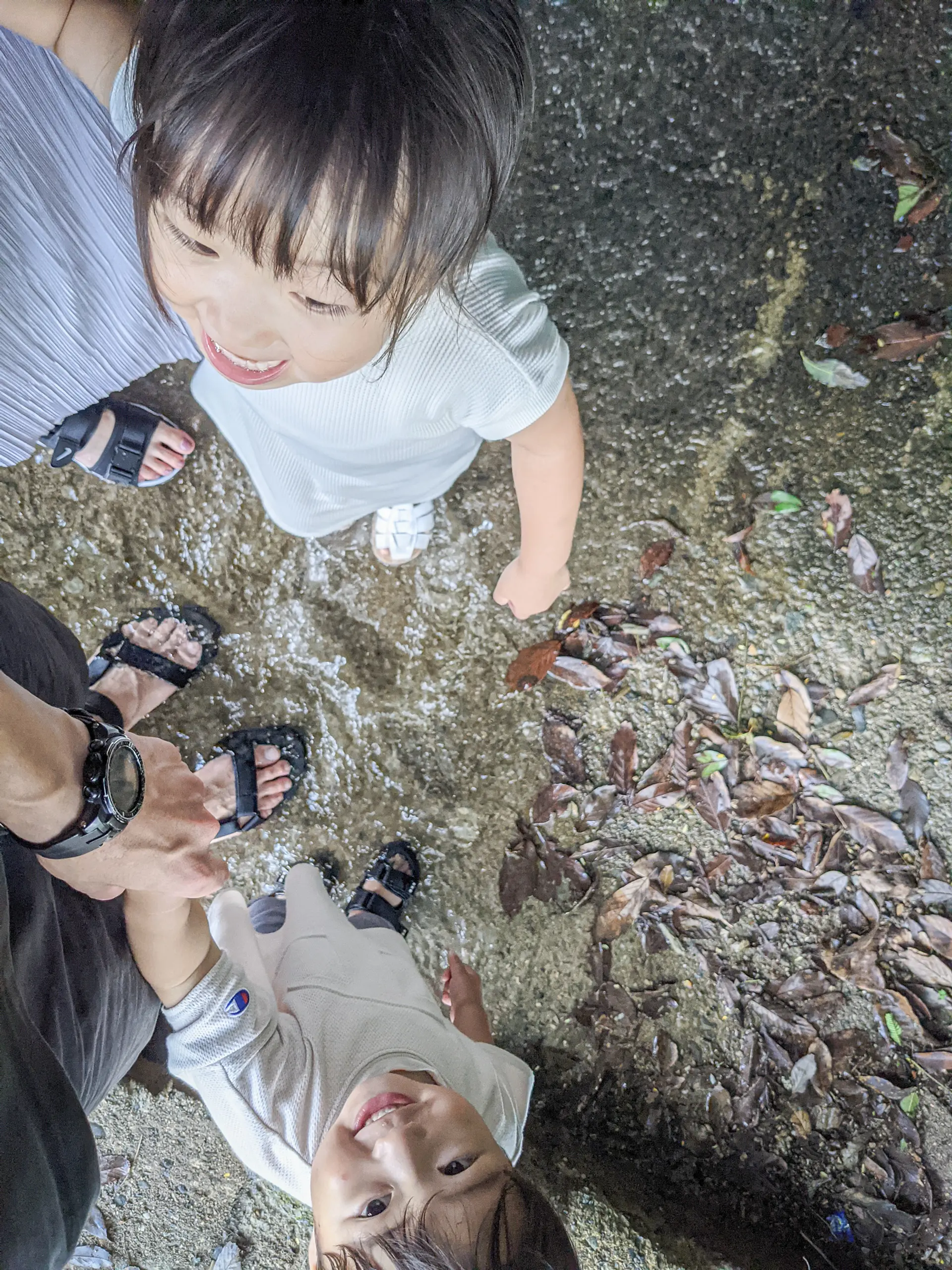 家族でいい汗をかきながらのお散歩でしたが、2歳の息子だけは背中の上で優雅に移動していました(笑)
