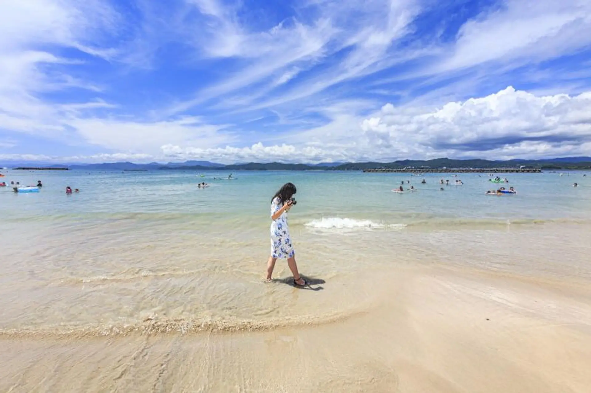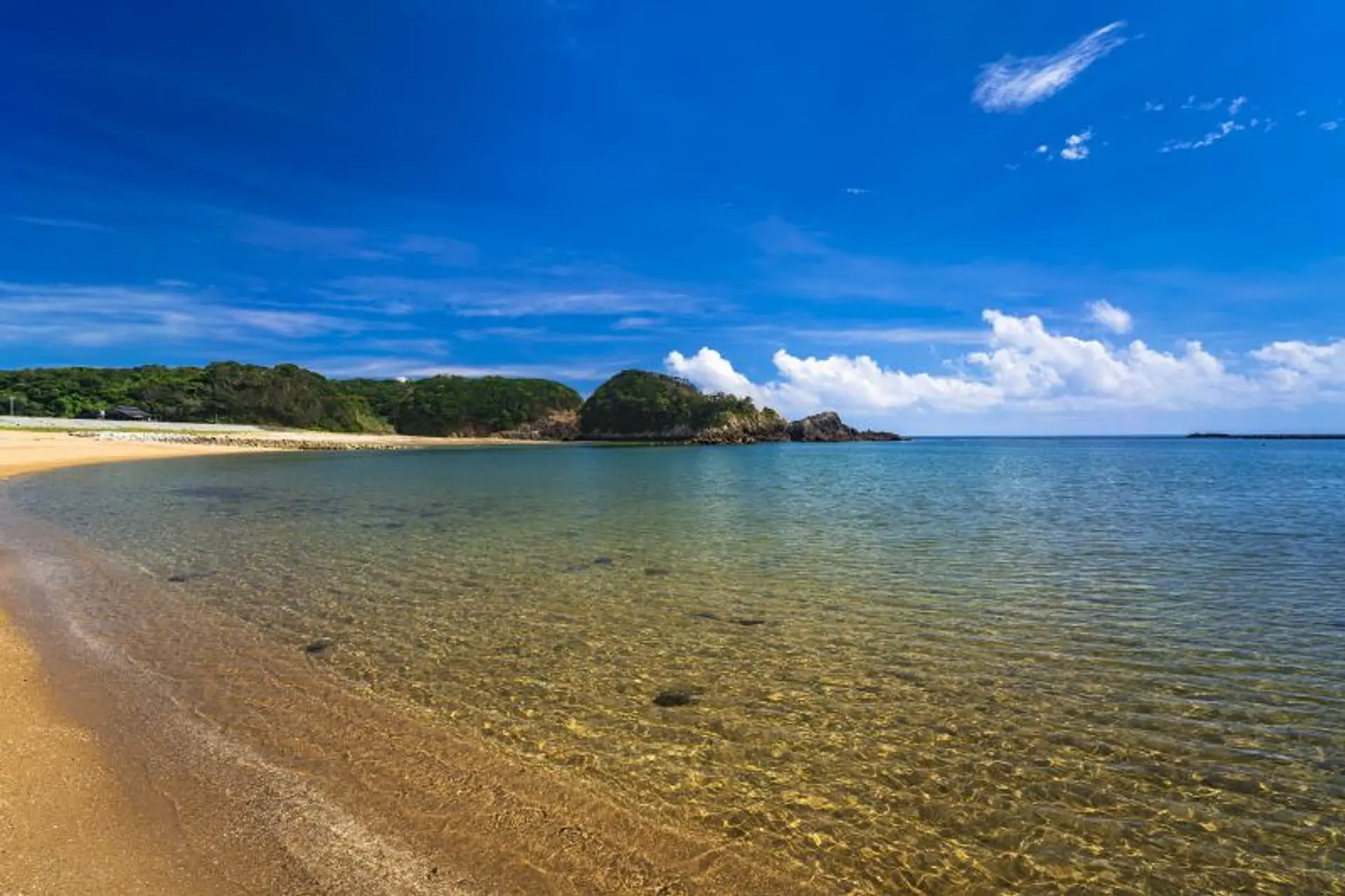 新鹿(あたしか)海水浴場は環境省の「快水浴場100選」に選ばれた綺麗な水質の海岸。