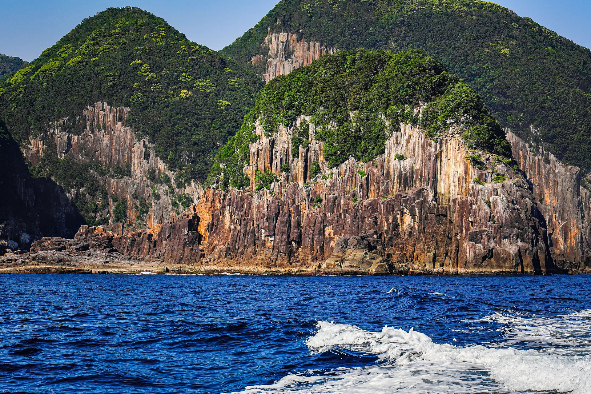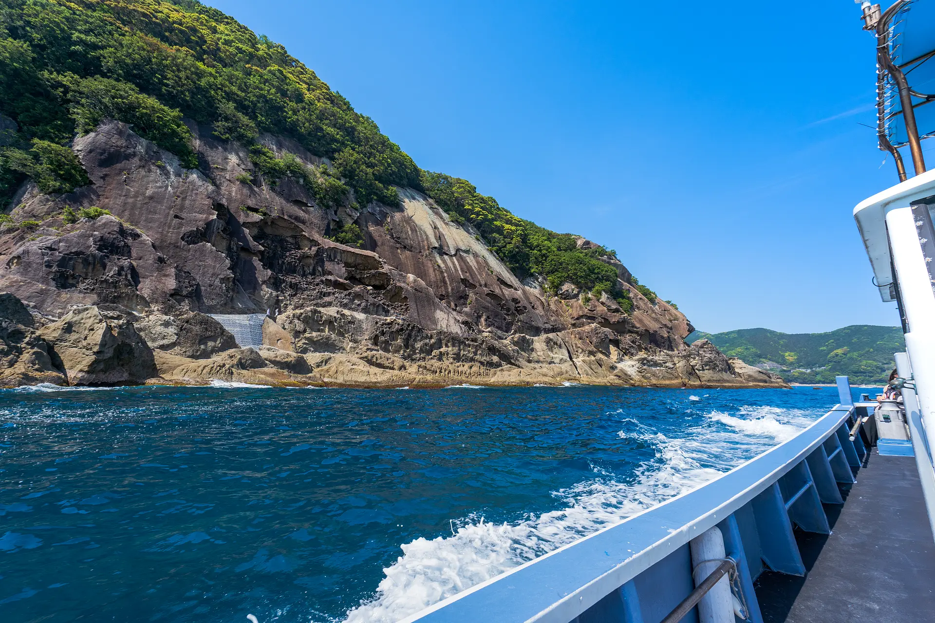 楯ヶ崎観光遊覧は青の洞窟だけでなく、世界遺産の鬼ヶ城、楯ヶ崎の大岸壁も海上から眺められる約70分の遊覧コースです。