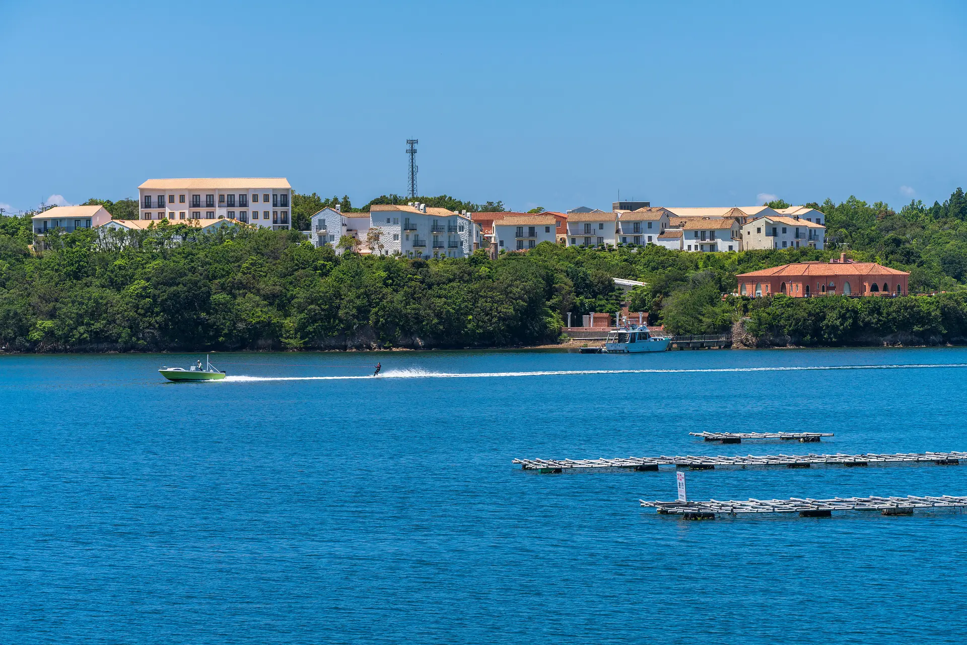 船からは、あの有名なミキモトの真珠養殖場を眺めることが出来ます。