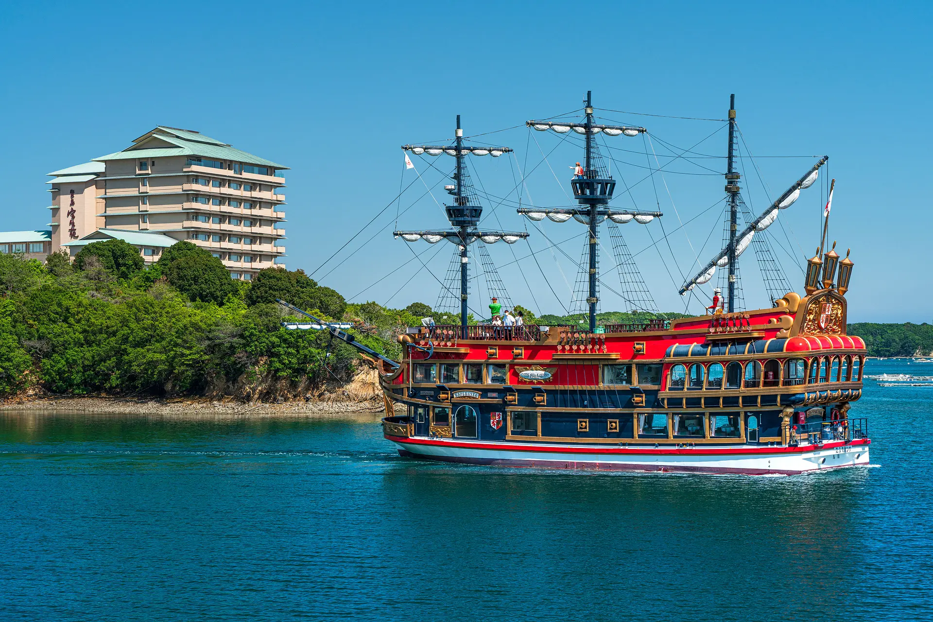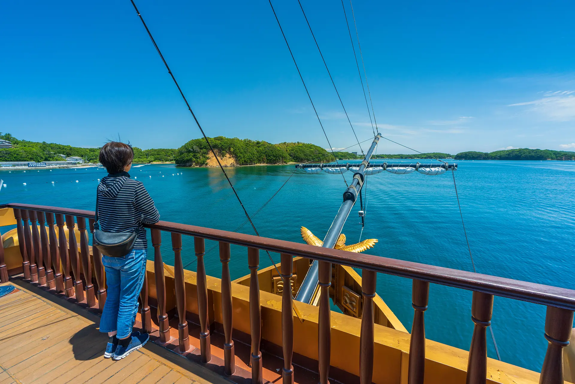 リアス海岸の英虞湾を周遊できる遊覧船。スペイン帆船型遊覧船(エスペランサ)で50分の遊覧を楽しめます。