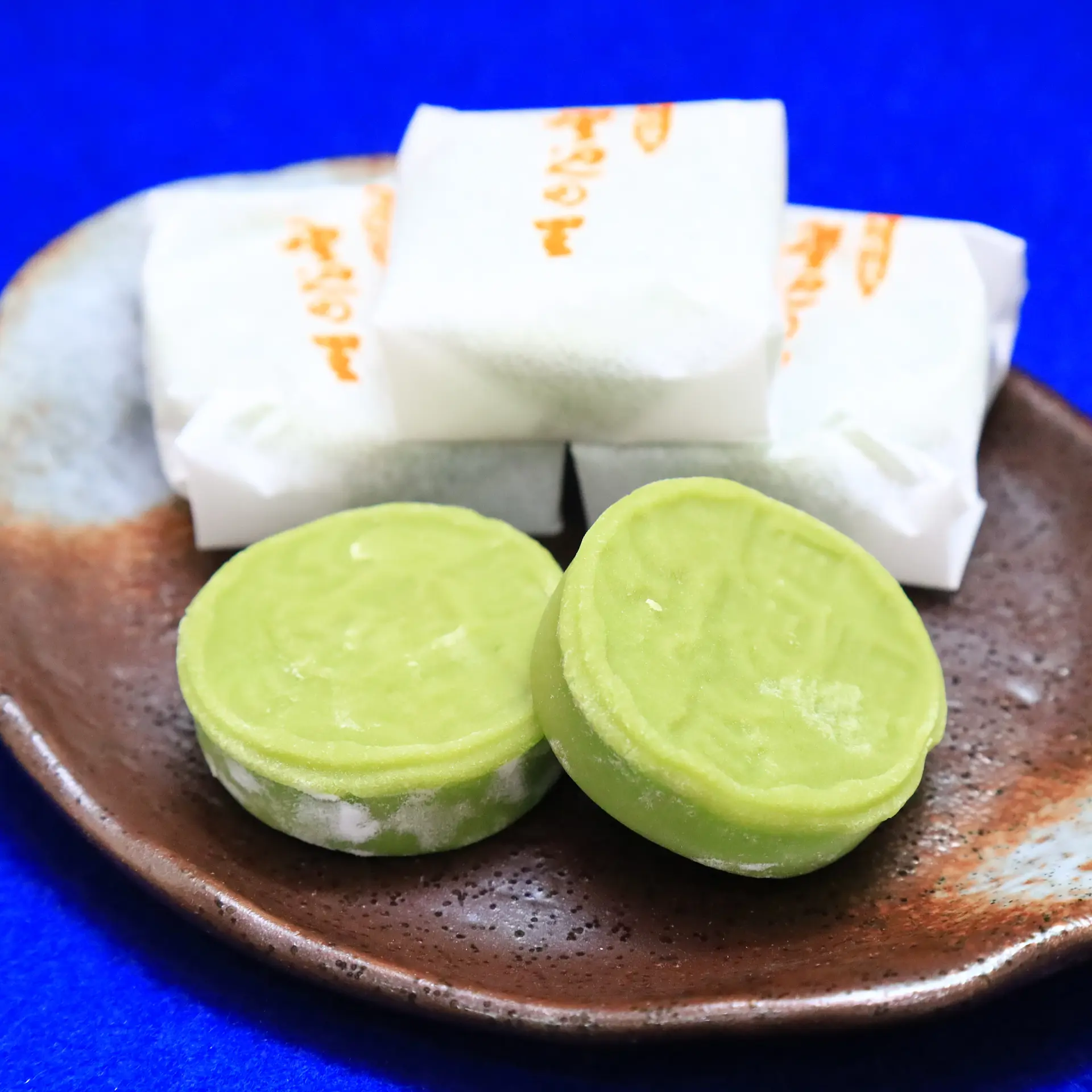 抹茶を練り込んだ、半生製のお菓子。抹茶の香りと風味を感じられるしっとり食感の砂糖菓子です。