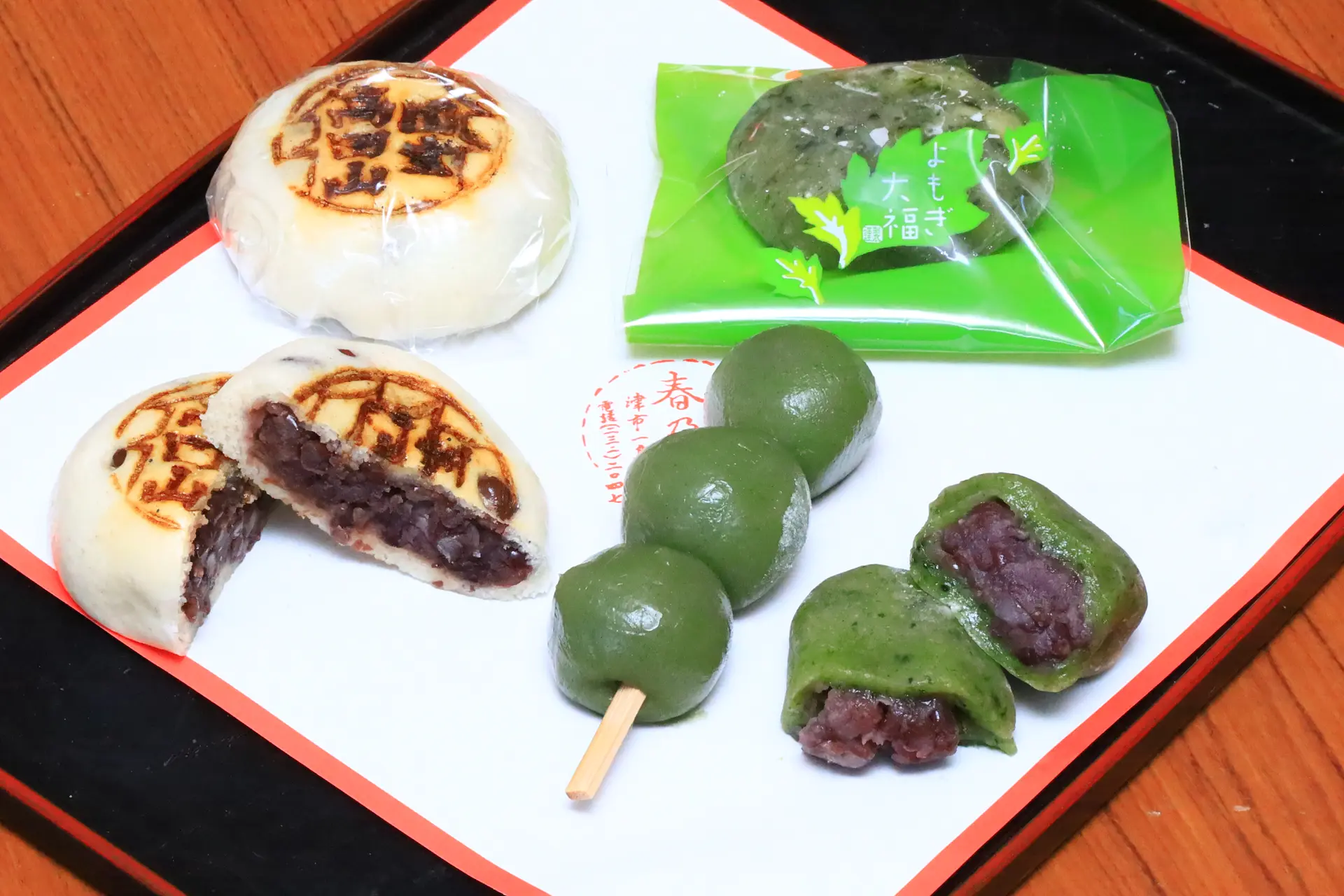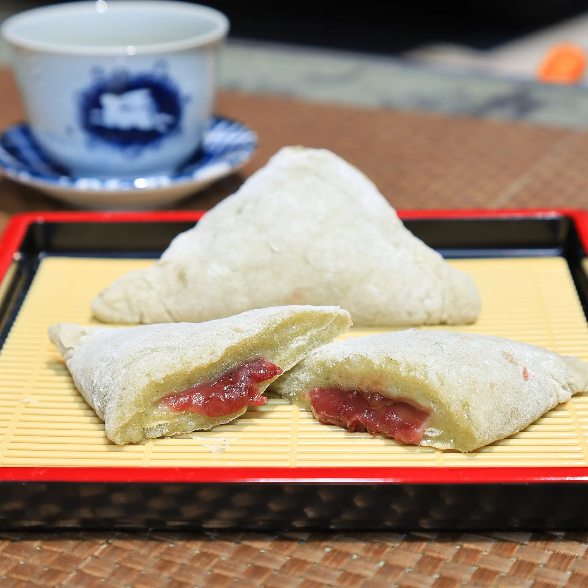 自然のよもぎを利用した手作りのお餅。生地には津市白山町の清流米を使い、杵(うす)つきならではの「ぶつぶつ」とした食感を楽しめます。