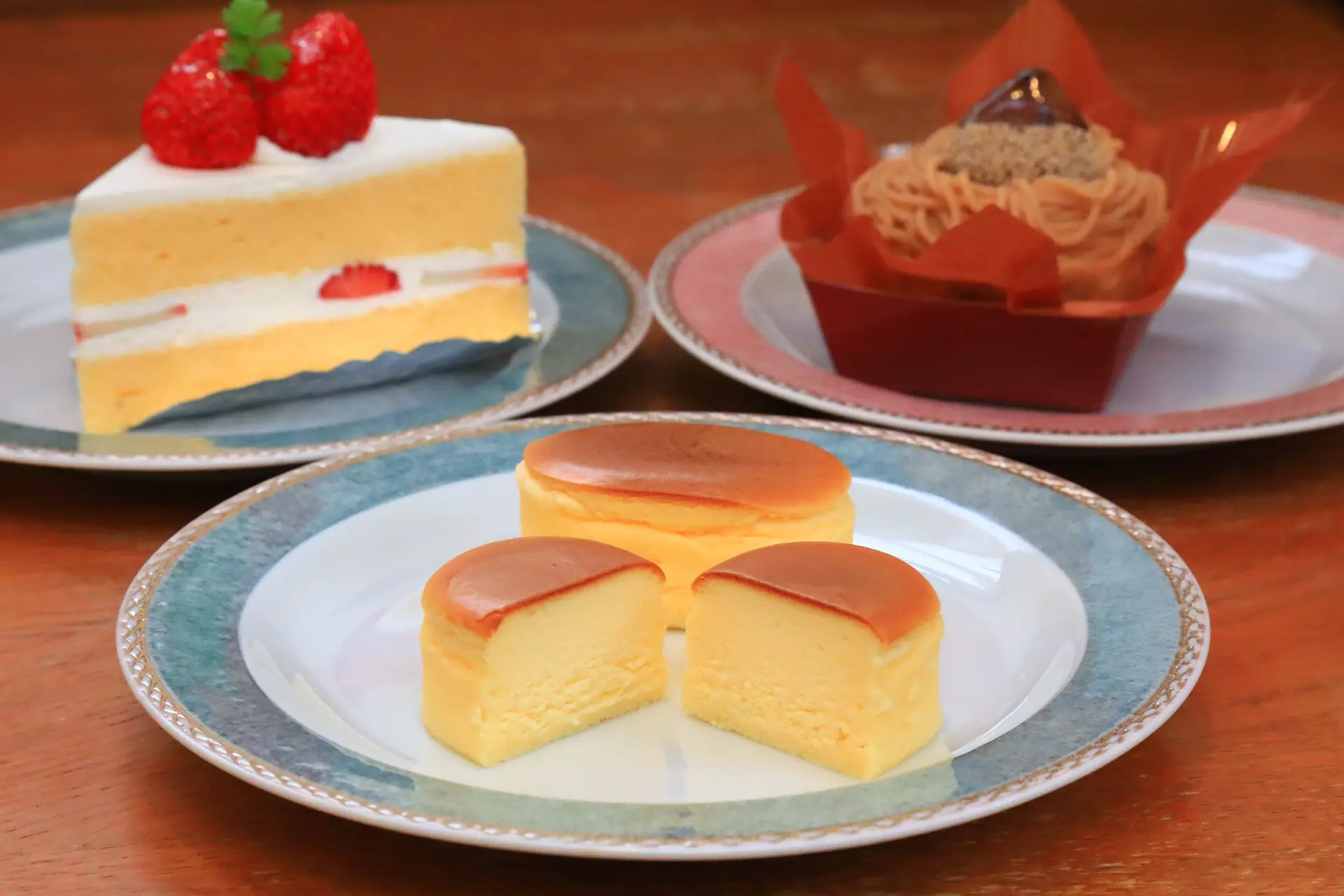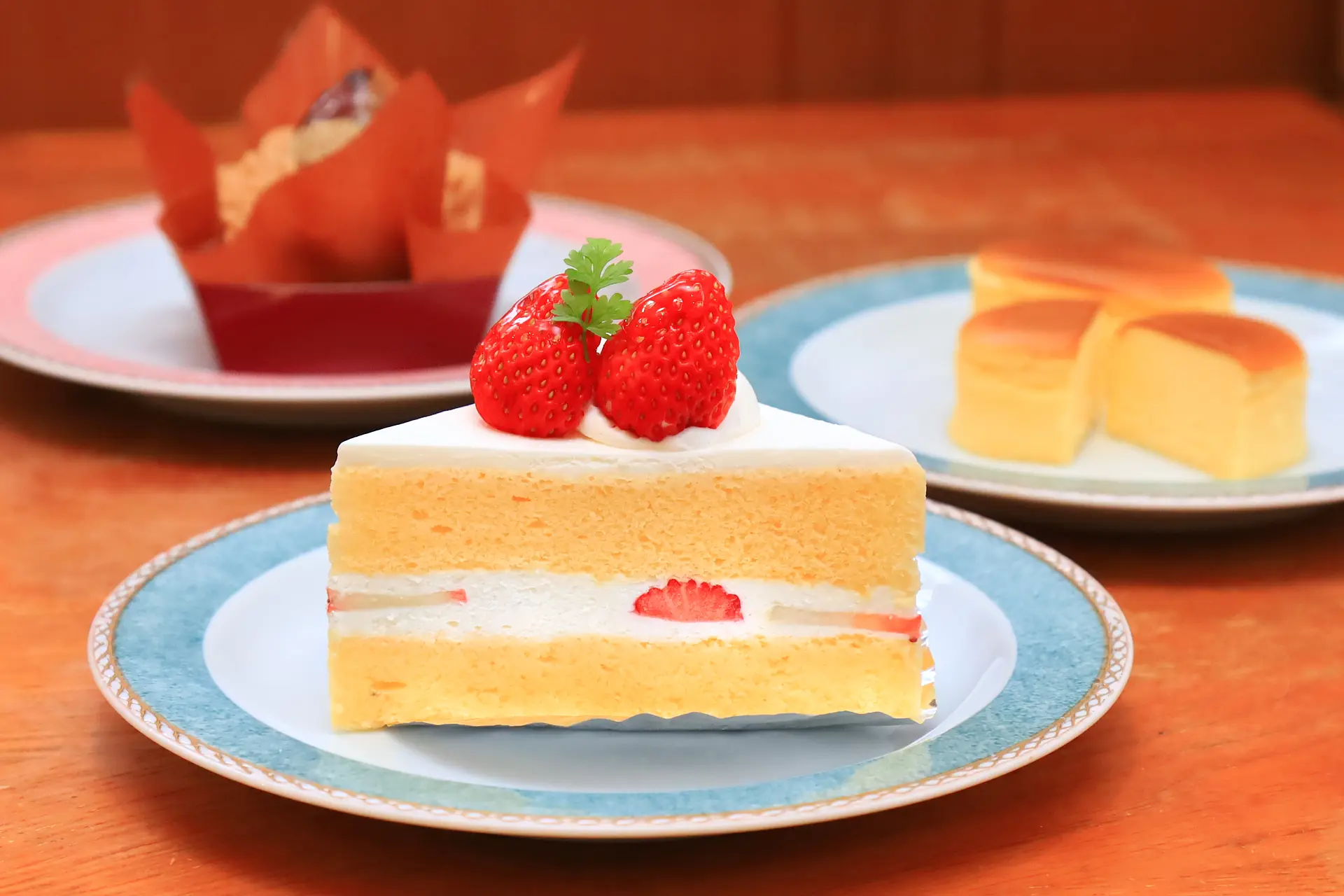 旬のフルーツが載ったショートケーキやロールケーキ、チーズケーキやカステラ、マドレーヌを紹介します。