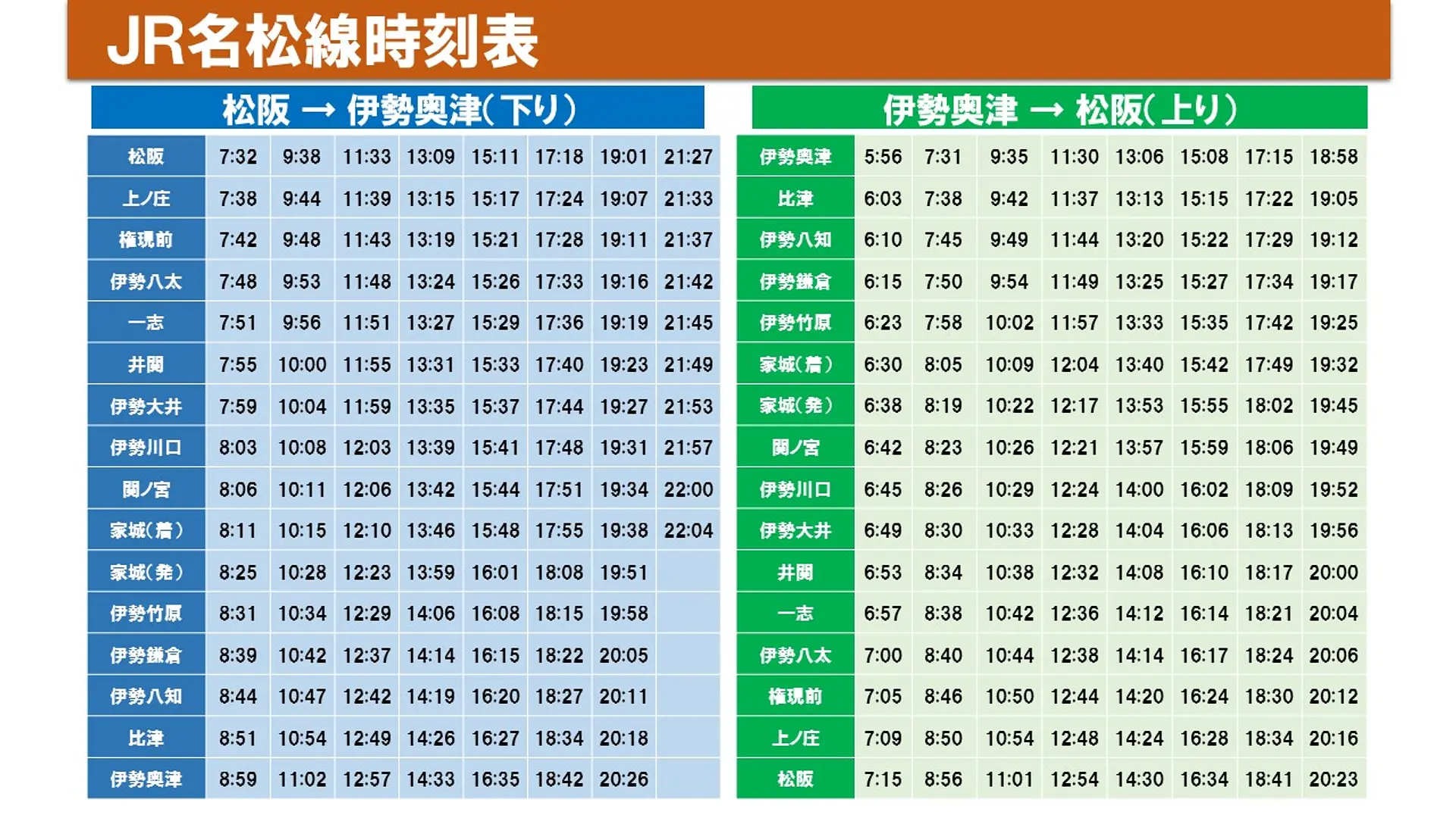 ふがまる 帰りの乗車時刻を確認してから行動しましょう。名松線は運行本数が少ないので、1本逃すと約2時間後の乗車になります。