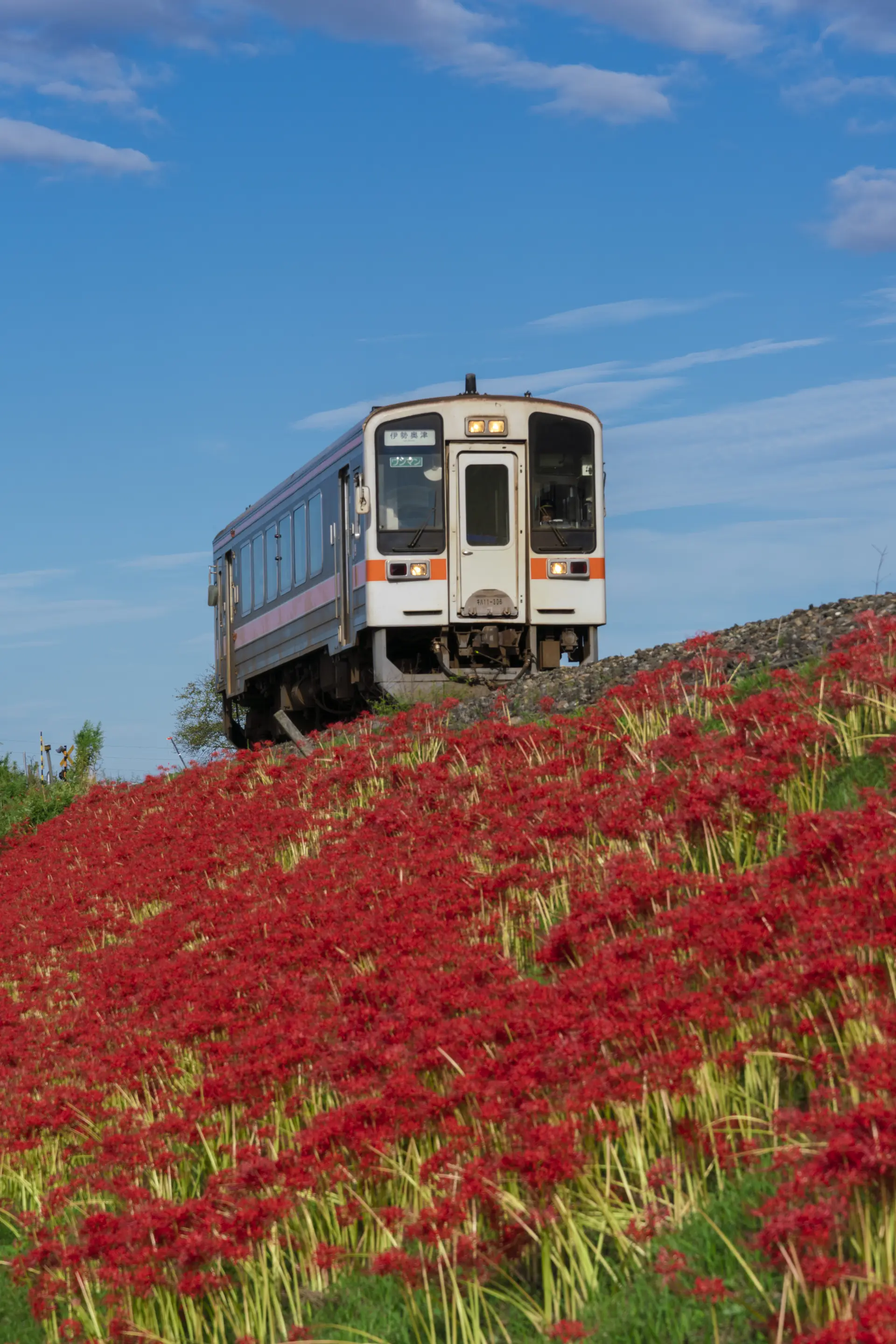 線路沿いに彼岸花が無数に咲く撮影スポットが一志駅〜井関駅の区間にあります。