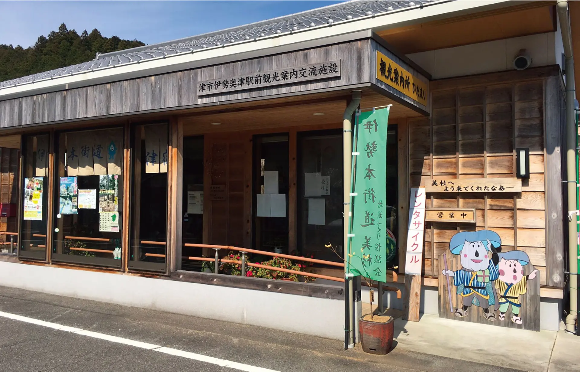 伊勢奥津駅の隣にある「津市伊勢奥津駅前観光案内交流施設 ひだまり」で電動アシスト付自転車を無料レンタルできます。