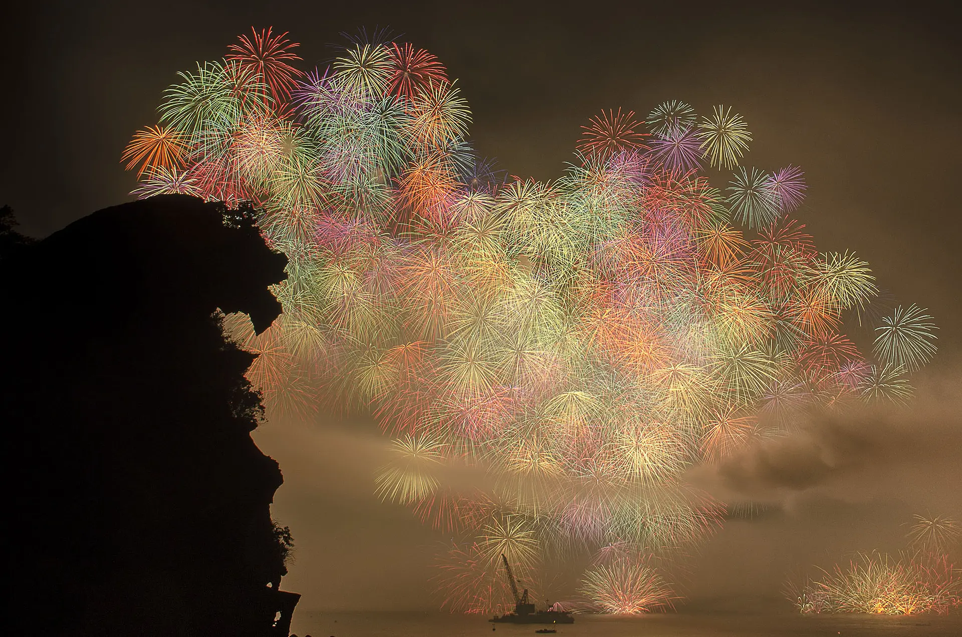 熊野大花火大会の時には、花火とコラボレーション。迫力満点の一枚が撮れました。
