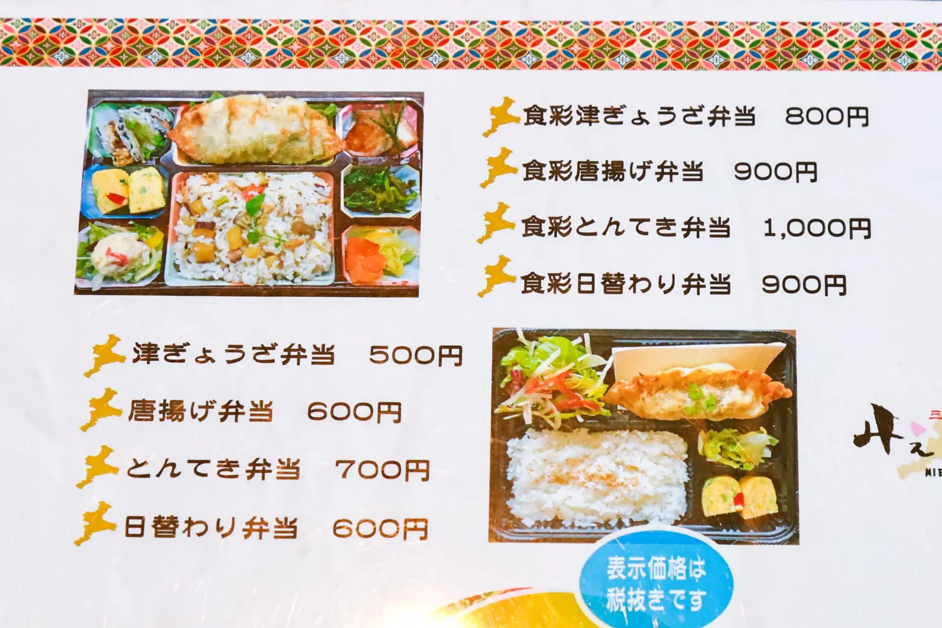 人気メニューがお弁当になった「みえやに弁当」は500円〜1,000円と、店内で食べるよりお値打ち価格に設定されています。