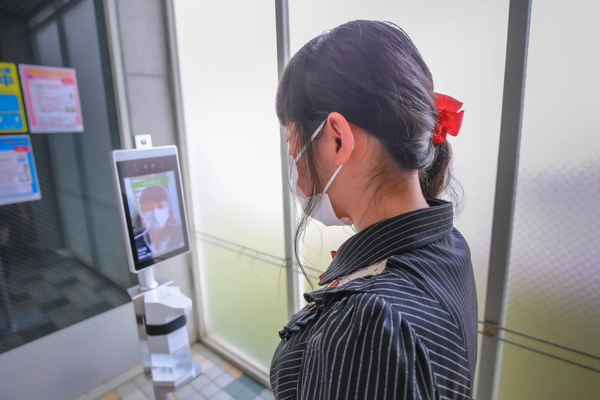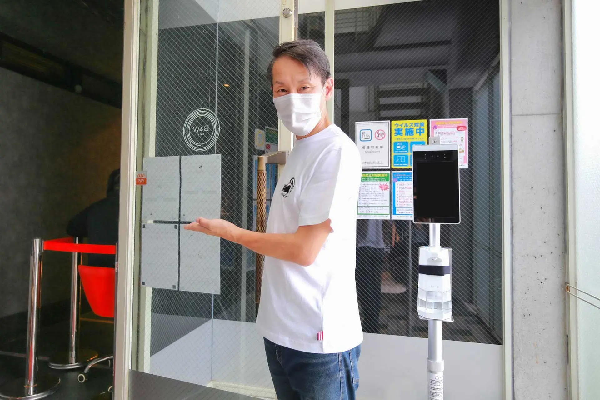 出入口には非接触型の消毒装置と検温装置を設置し、来場者への感染症対策を徹底しています。