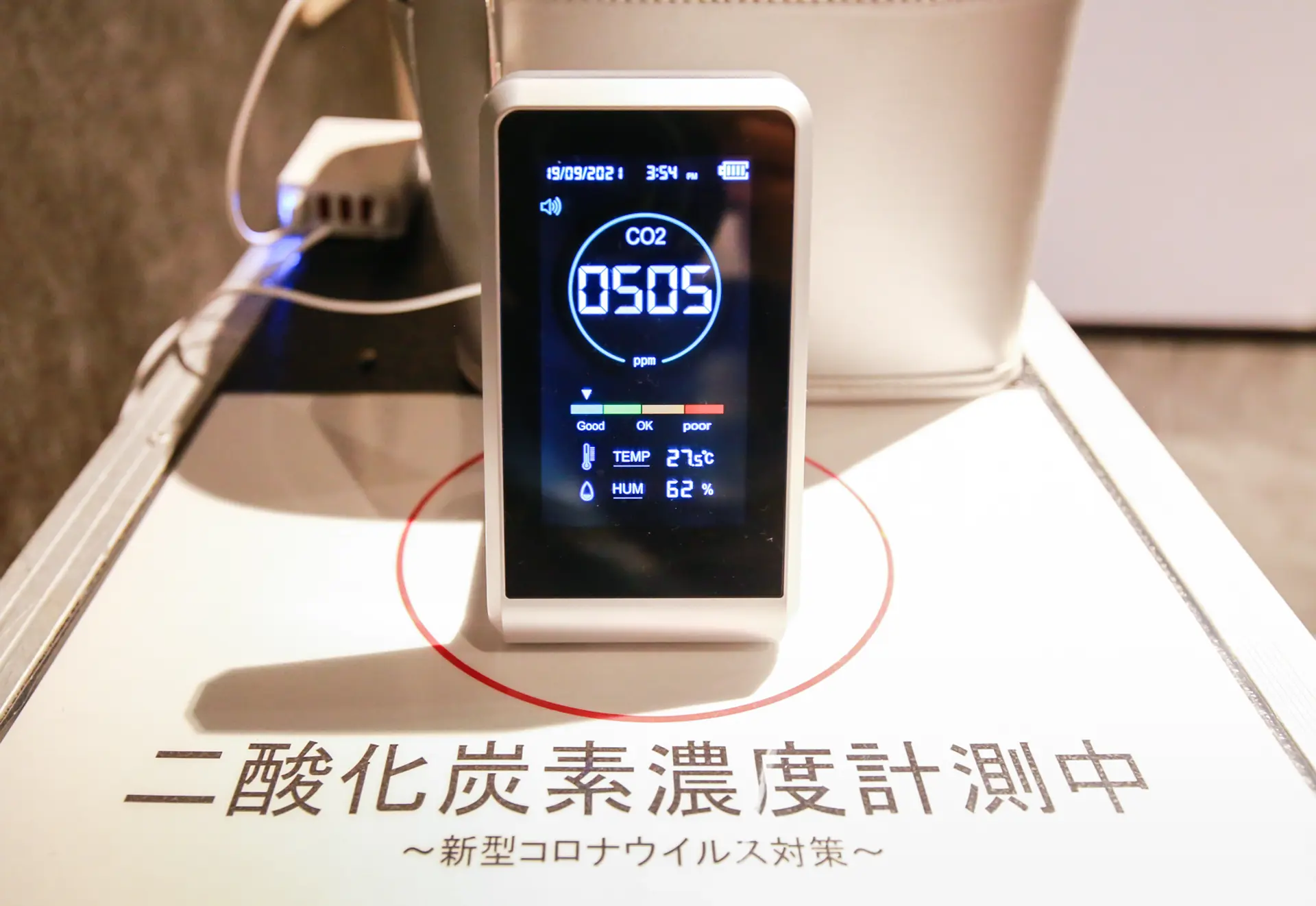 ライブフロアには二酸化炭素濃度が見える装置を設けており、空気循環の精度を常に確認できます。