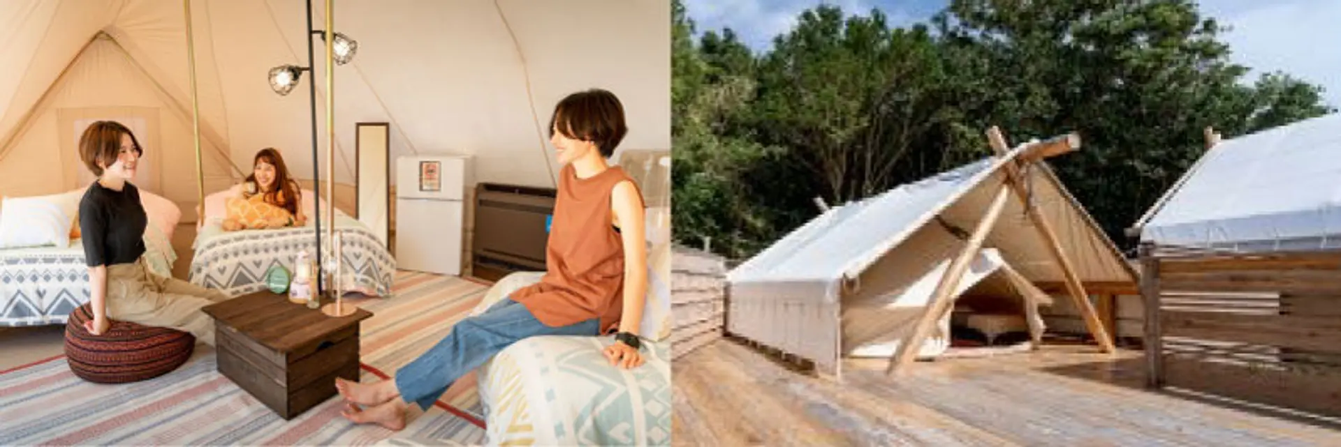 (※)グランピングとは、グラマラス(豪華な)とキャンプを組み合わせた造語で、キャンプ道具を用意しなくても気軽にキャンプを楽しめる体験のことを指します。