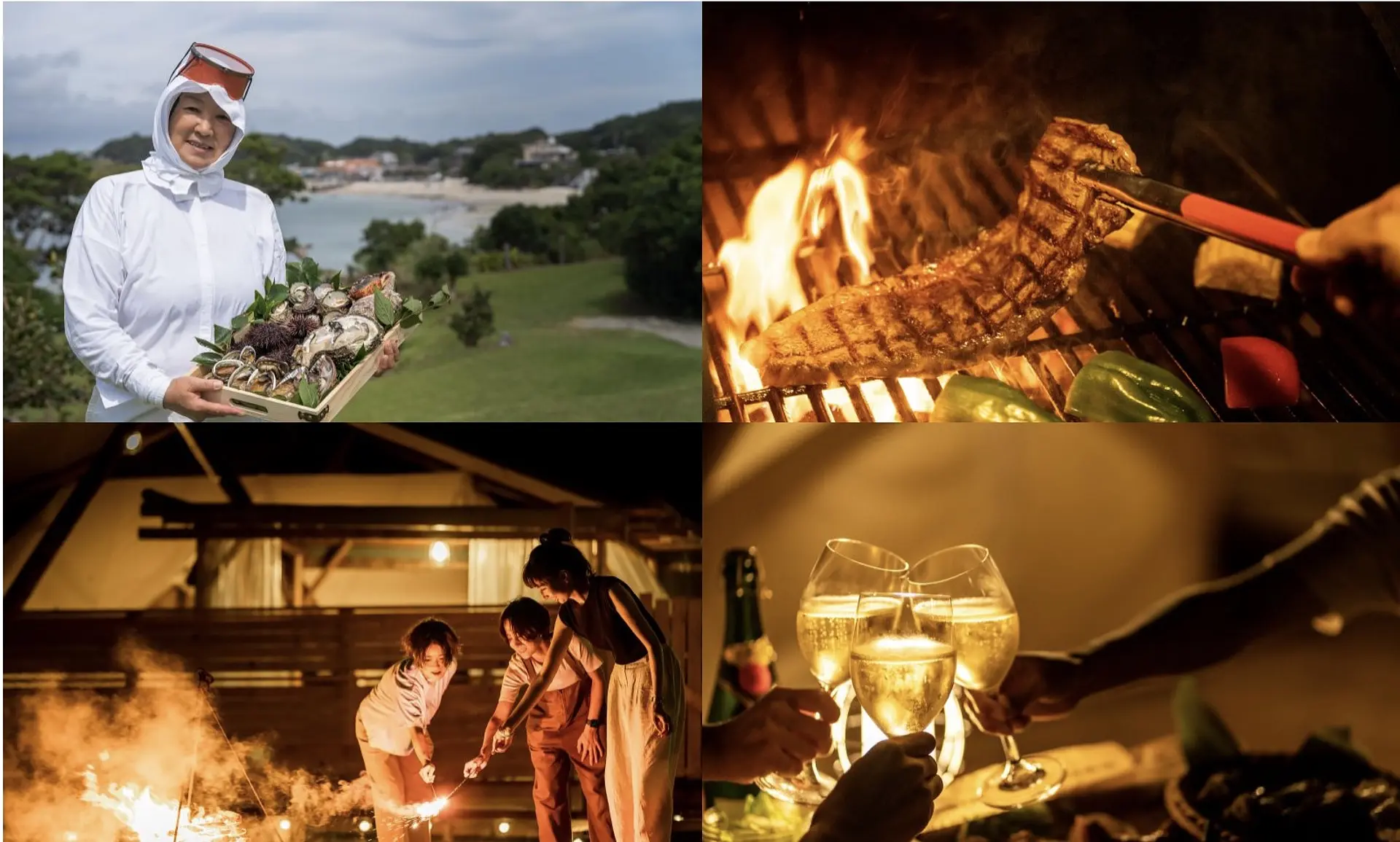 伊勢志摩の食材を使った豪華なバーベキューとキャンプファイヤーを楽しんで、仲間たちと優雅な夜を過ごしましょう♪