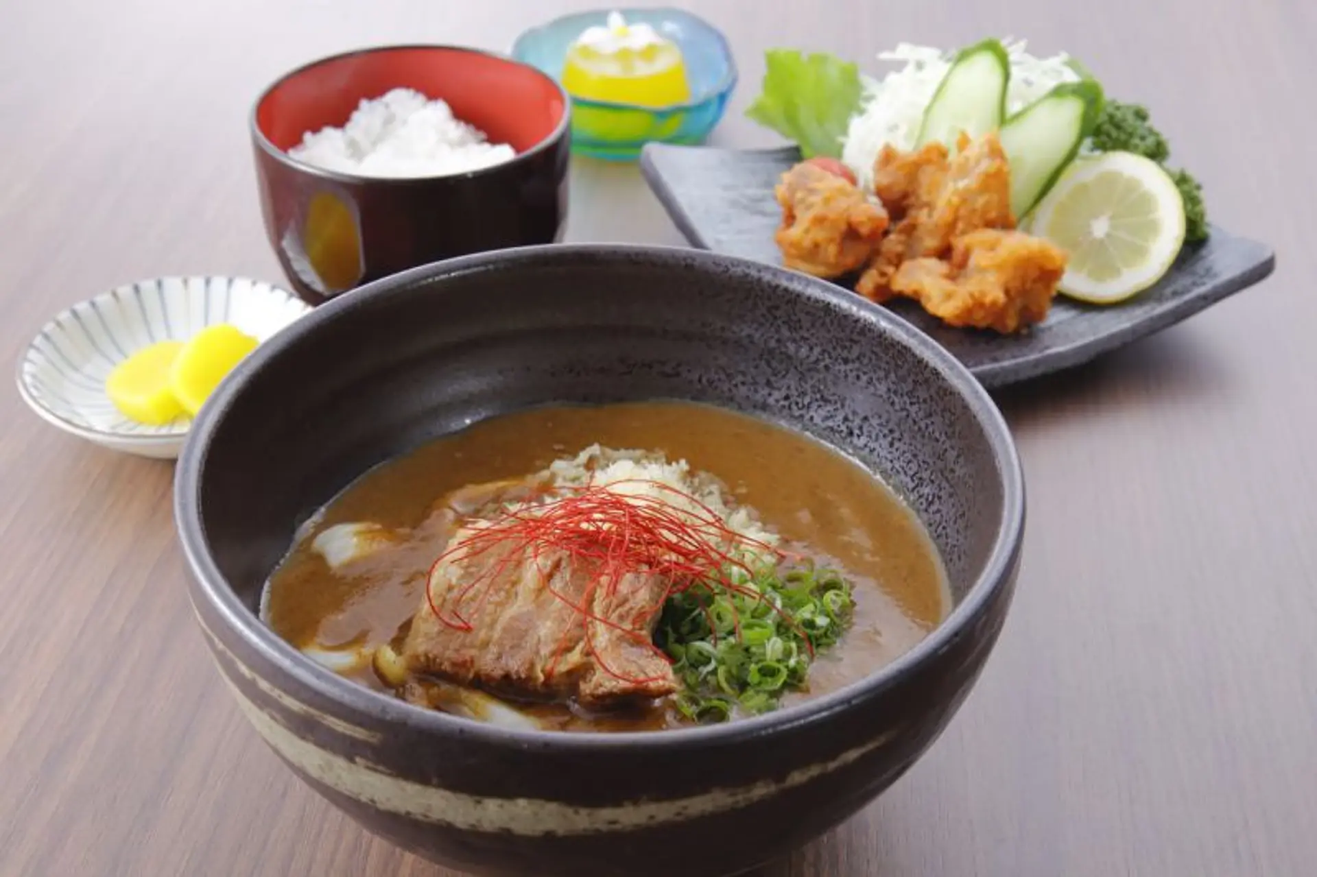 モチモチとした太い麺は「伊勢うどん」を使用していて、麺がカレーにしっかりと絡みます。