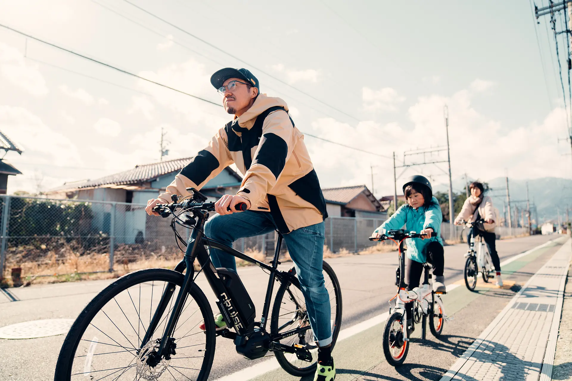 菰野町の各地で貸し出される電動アシストの自転車・バイク・キックボードを使って町中を移動することで、車窓からでは気づけなかった菰野町の風や温度、匂い、そして自然を体感しながら移動することができるのが魅力。排気ガスを出さないEVバイクなので、環境に優しいのもいいですね。