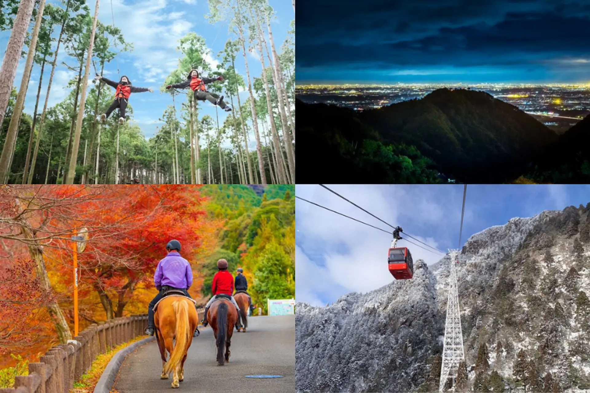 御在所ロープウエイからの絶景や、フランス生まれの樹上体験「フォレストアドベンチャー」、四季折々の景色を眺めながらの乗馬体験など、日常では味わえない特別な体験を一度に楽しむ欲張りなモデルコースをご紹介!