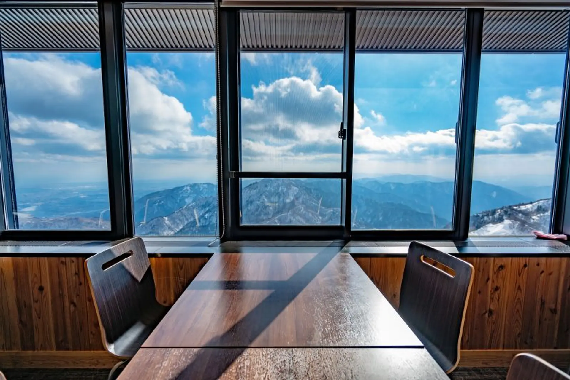 ガラス張りの店内からは絶景が広がり、鈴鹿の山々を間近に見ることができるだけでなく、伊勢湾、麓の街、遠くには名古屋までも望める絶好のロケーションです。