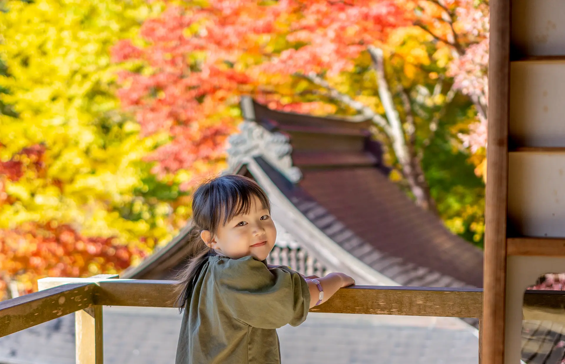 八角銅鍾は高所からも眺めることができ、様々な角度から紅葉を楽しむことができます。青空の下で色とりどりに染まる境内は、まるで紅葉で装飾されているかのようでした。