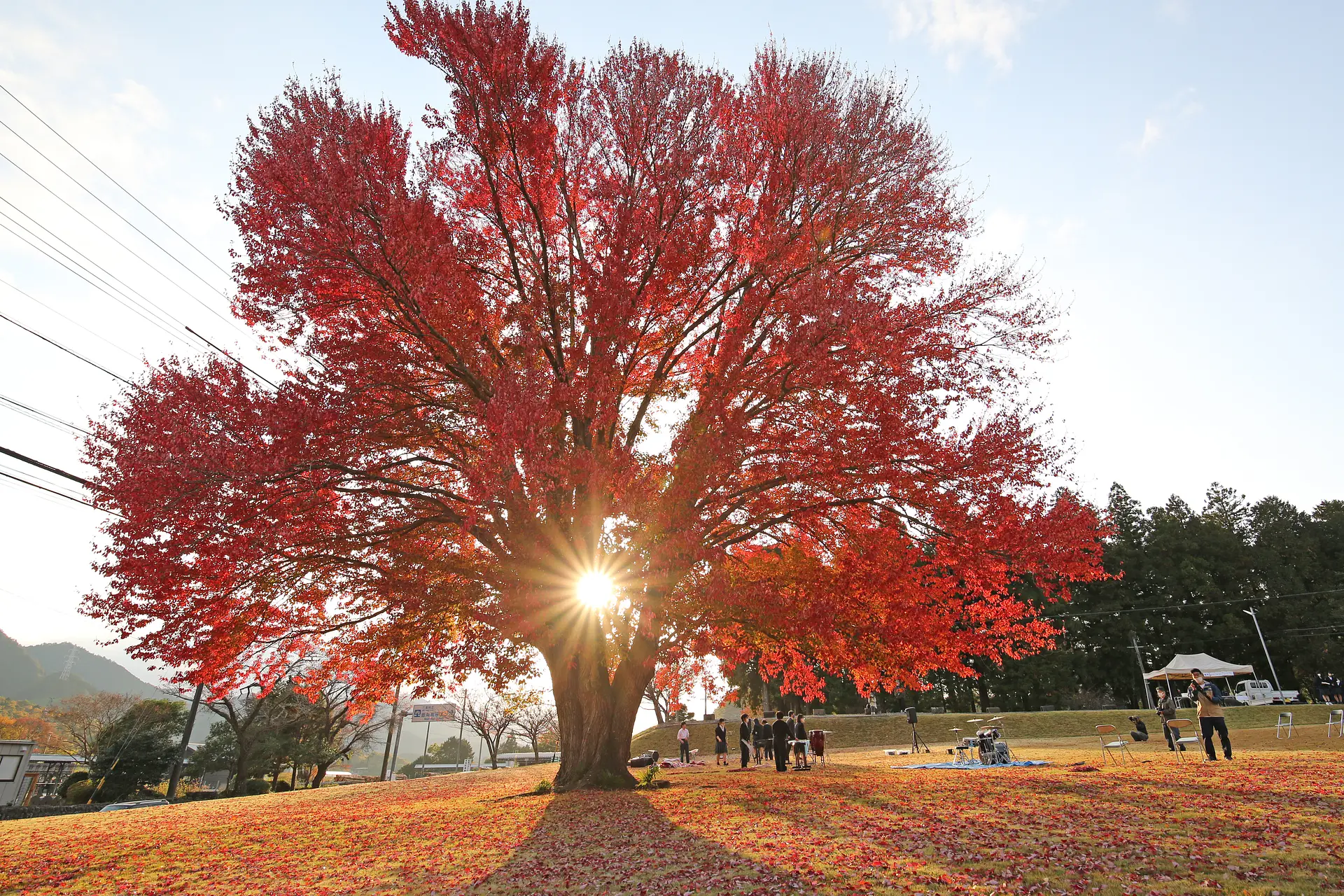 ハナノキが見頃を迎える頃には、飯南高校吹奏楽部の生徒によるコンサートが大木の下で開催され、優雅で幻想的な空間が広がるんです!
