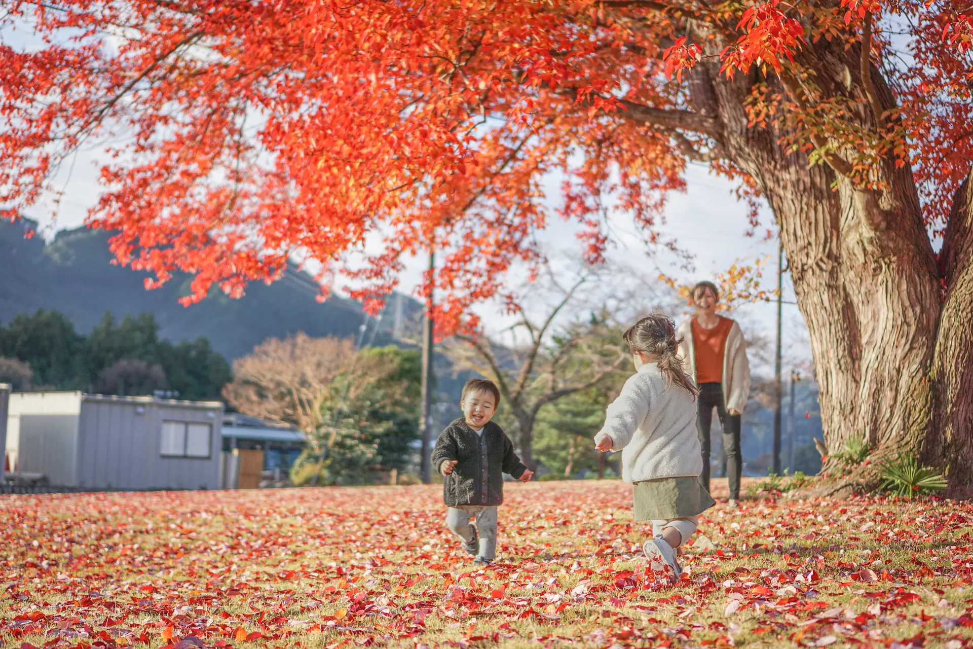 息子は豪快に転んでしまい、全身を落ち葉で赤く染めていました(笑)