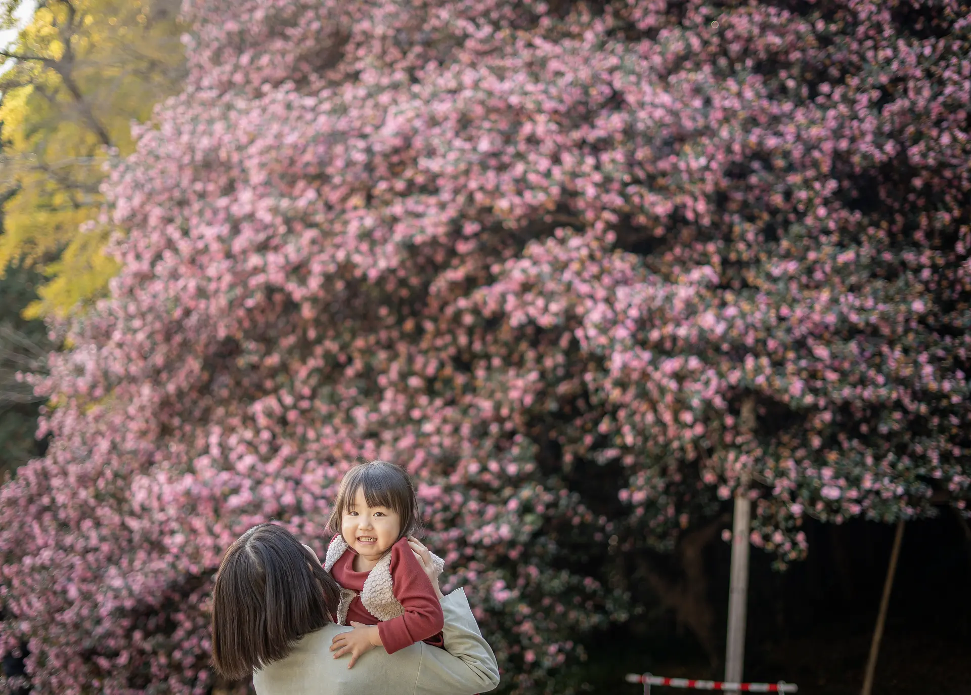 サザンカは前を走る道を包むように枝が伸びているため、下をくぐることもできちゃいます。