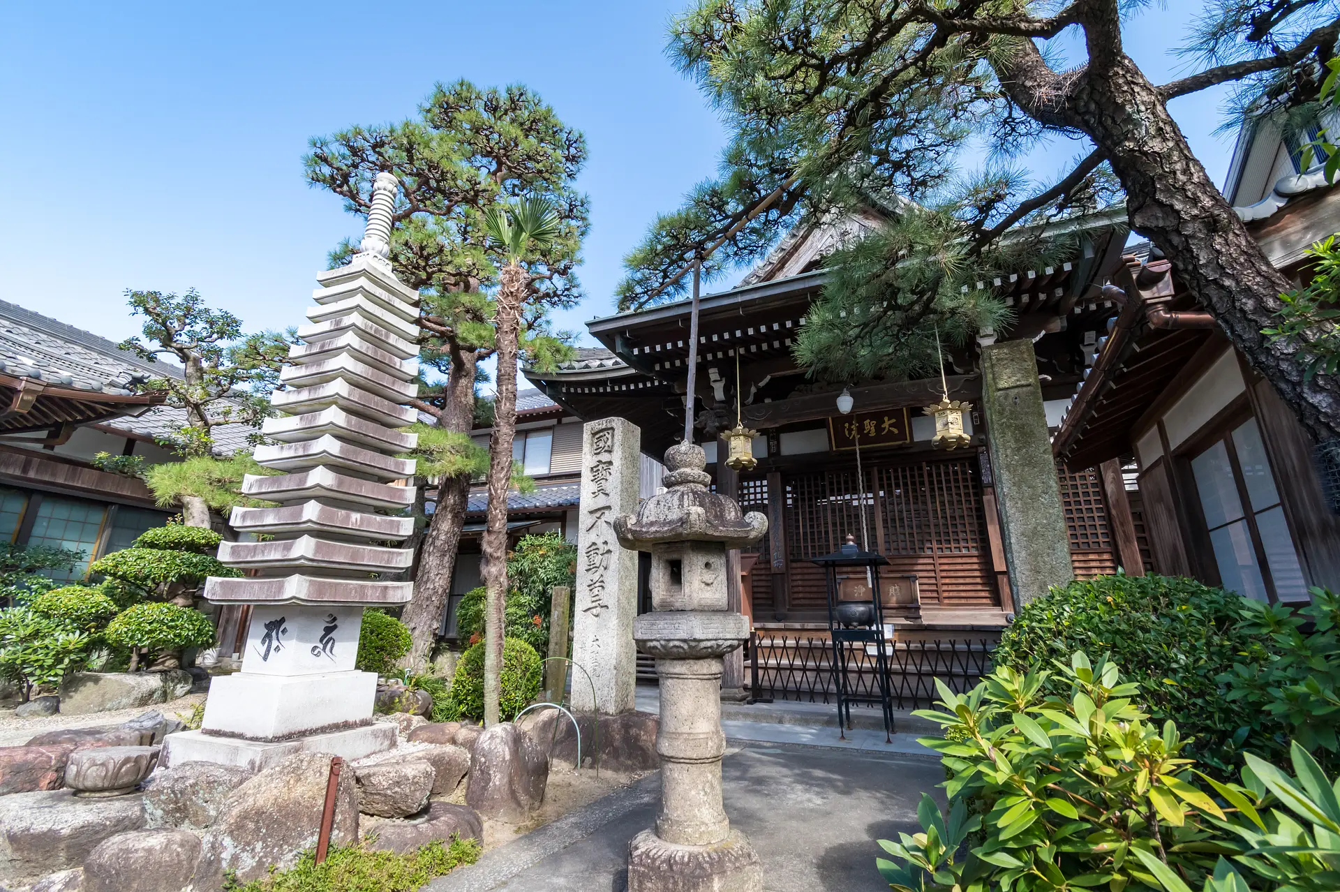 住宅地の中にひっそりと佇む大聖院。境内はとても綺麗に整備されていて「日永のお不動さん」と親しまれています。
