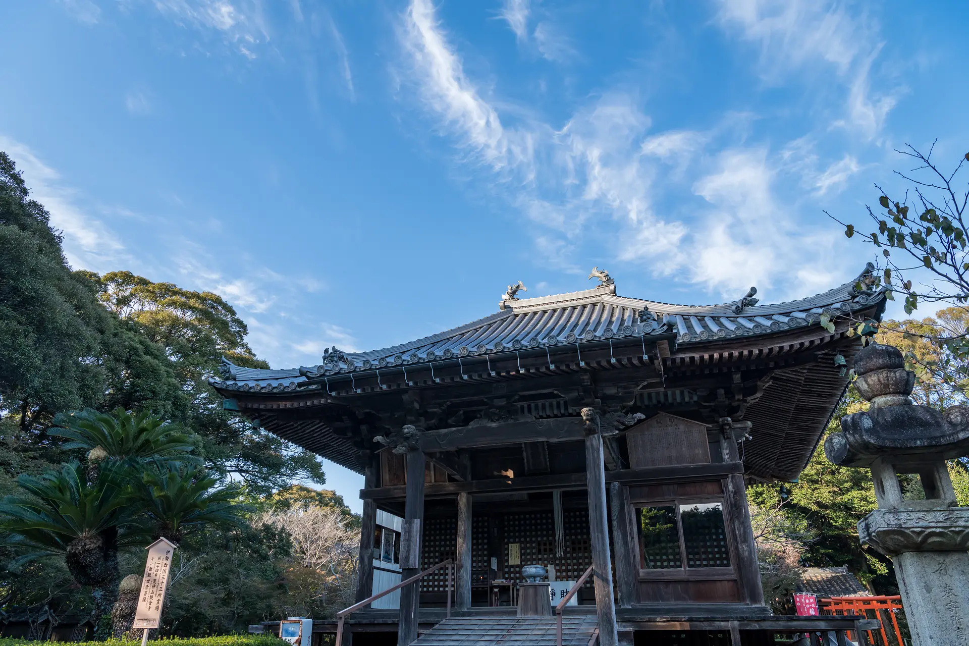 国指定重要文化財であり、源頼義公の念持仏(ねんじぶつ)であった不動明王が本尊秘仏として安置されています。なお、本堂は立ち入り禁止の為、お参りは本堂前からとなります。