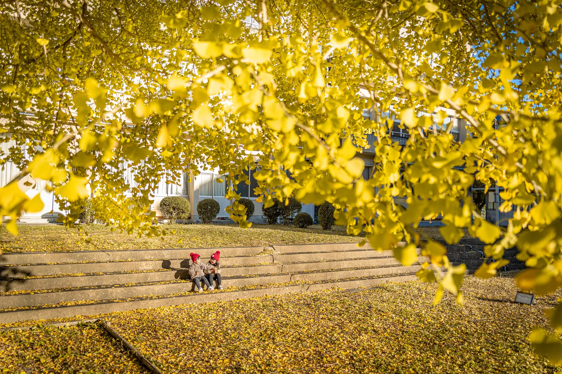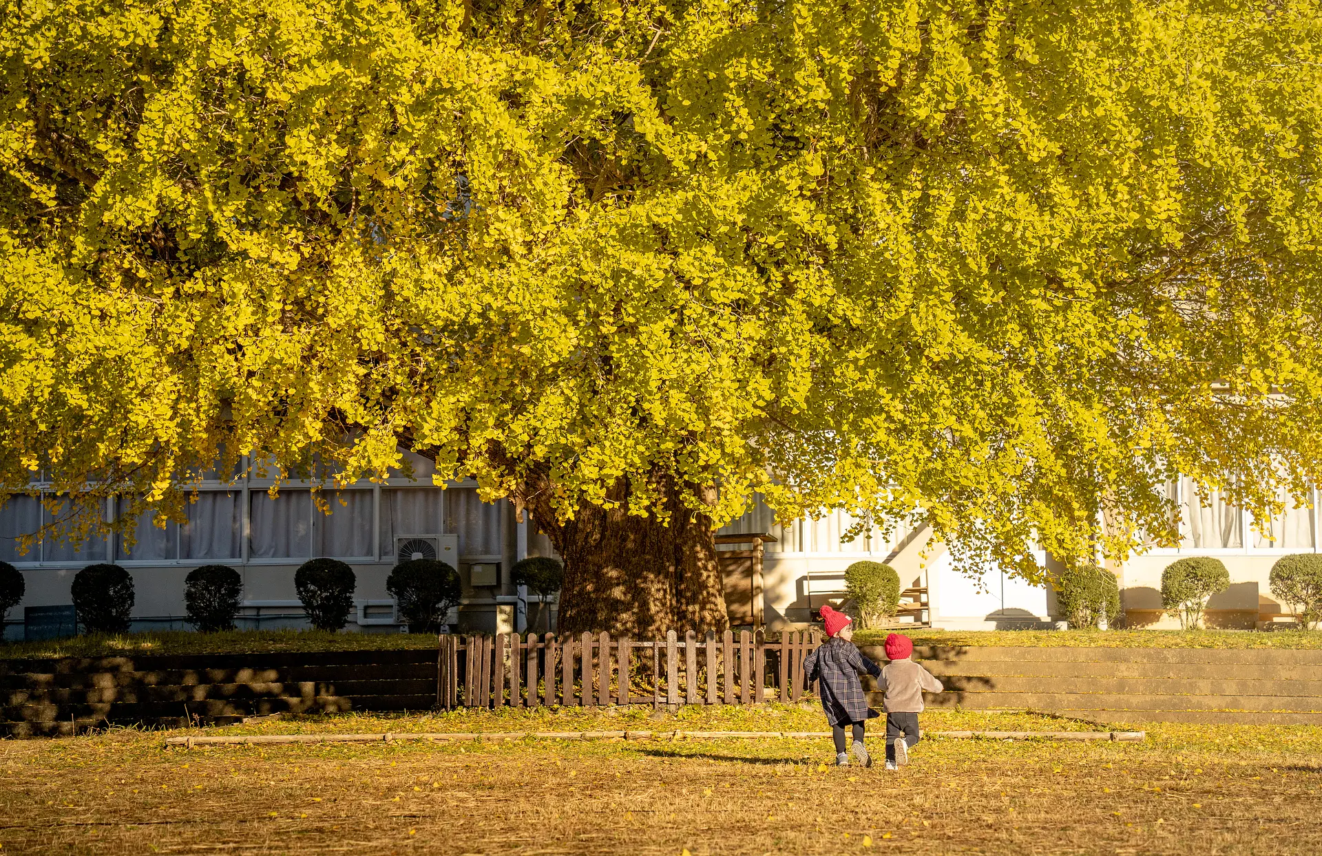 晩秋には大木から落ちる大量の葉っぱにより、校庭全体が黄金色に溶け込むほど!