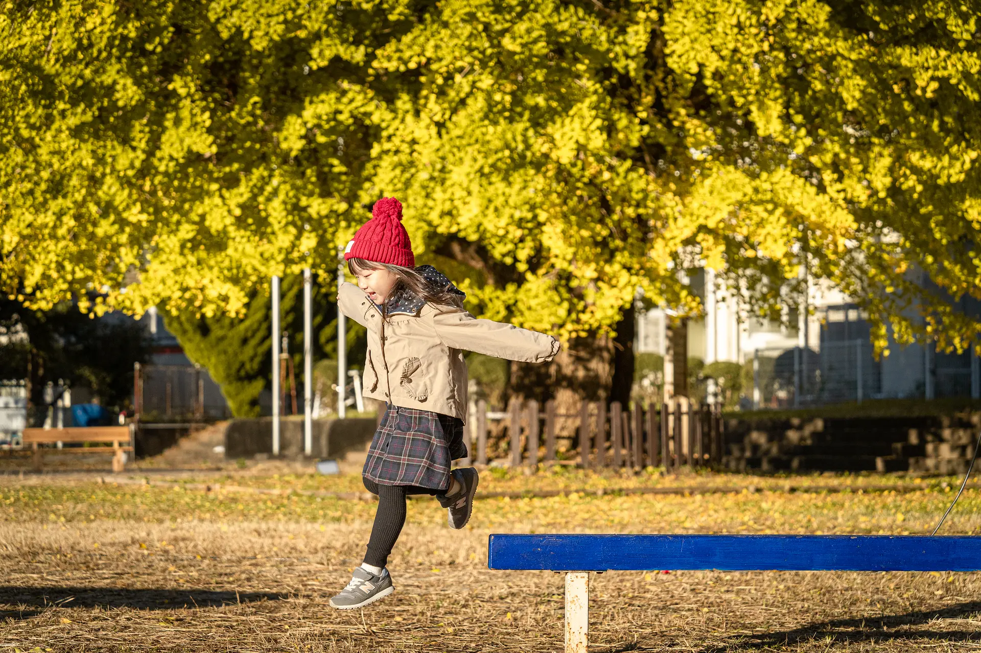 娘はベンチと並んで設置されていた平均台が気に入ったようで、渾身の演技(ただのジャンプ)を何度も披露してくれました(笑)