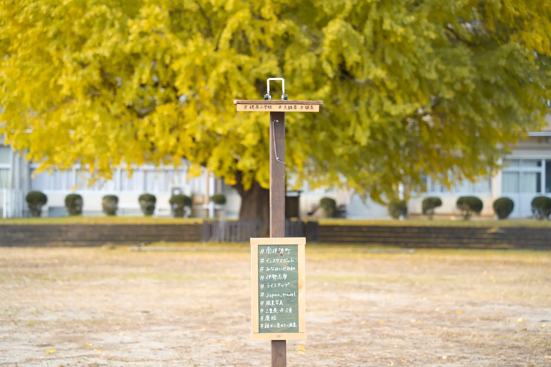 今回紹介するのは、三重県度会郡南伊勢町伊勢路にある穂原小学校(※)の校庭にそびえるイチョウの大木です。