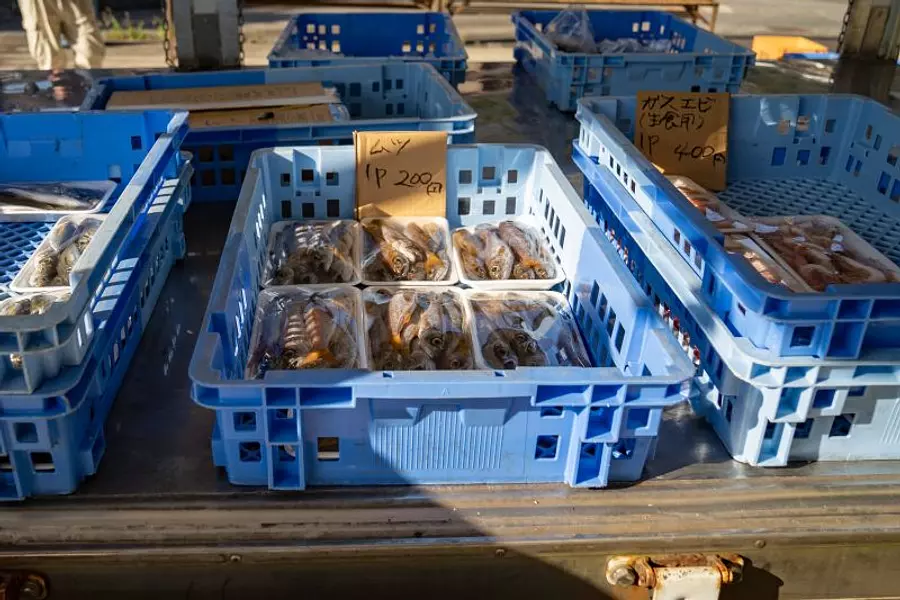 〇水揚げされたばかりの新鮮な海の幸をトラックで販売する「三重外湾漁協の朝獲れ鮮魚便」