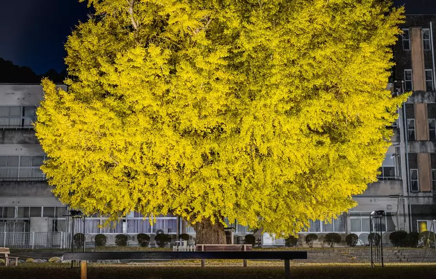 南伊勢の夜に煌めく大迫力の大イチョウ!ライトアップで輝く「穂原小学校の大イチョウ」