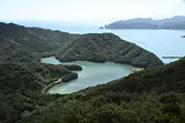 ・見江島展望台(ハートの入り江) 目の前に見える入り江がハートの形に見え、恋人たちの聖地となっている(写真)