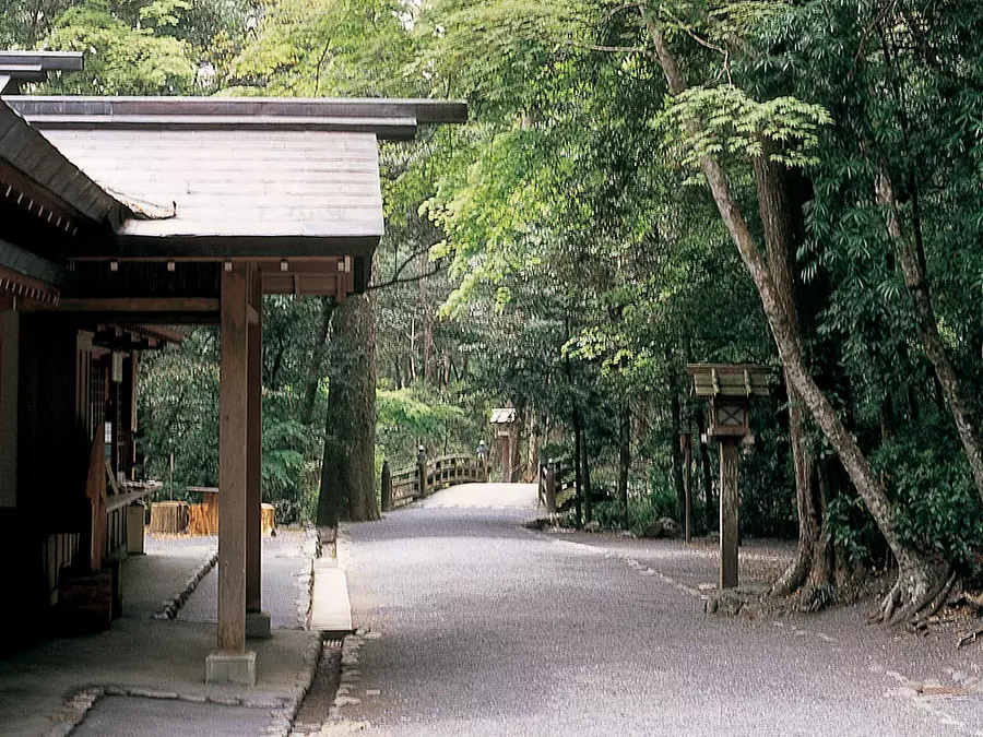 深い社叢におおわれ瀧原宮・瀧原並宮が同域内に並ぶ。約200mの大杉が立ち並ぶ参道を歩くと、心改まる静寂の時が流れます。皇大神宮(伊勢神宮内宮)の別宮で、平成26年秋に遷宮が行われました。