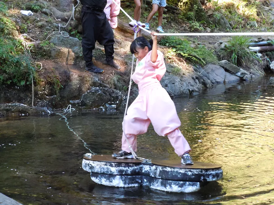 現代社会にもその知恵が生きる、忍術の奥義を極めよう!忍者衣装を身にまとい、高い壁を登ったり、バランスを取りながらロープを渡ったり、壁伝いに移動したり・・・ 本格的な忍者修行アトラクションが楽しめます。伊賀忍者の祖・百地丹波が修行した赤目の滝で、伊賀流赤目忍術を体験ができます。大自然の中での忍者修行体験に参加して、秘伝の書を手に入れよう!お子様からご家族連れでも挑戦できます。