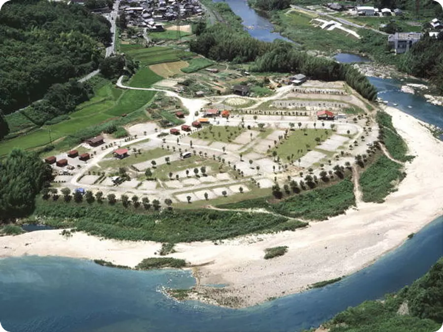 忍者の里、伊賀にある木津川河畔のキャンプ場です。場内は広々とした開放的な雰囲気で、サイトもゆったり、遊び場も随所にあります。