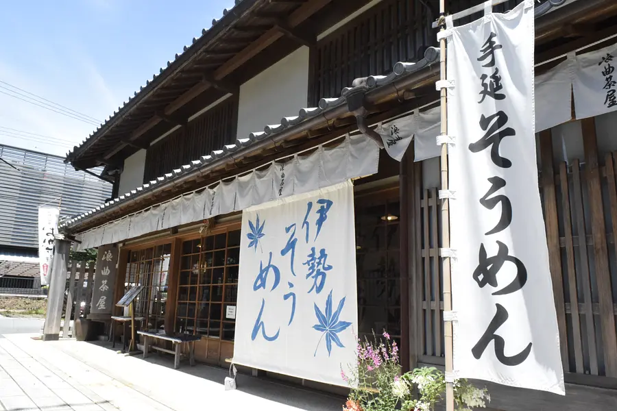 江戸時代から「生きているうちに食わなければ、死んで閻魔に叱られる」といわれるほど評判だったうどん屋「どぶろく」を現代に再現させたのが「ふくすけ」。伊勢神宮の参拝客に人気の名物グルメが「伊勢うどん」。柔らかい極太麺に濃褐色のタレをかけたシンプルなうどんは、素朴な料理だからこそ作り手の想いが素直に表れ、離乳食期の赤ちゃんからご年配の方まで誰もがおいしくいただけます。鬼瓦にあしらわれた福助と、切妻・妻入りの軒が目印。