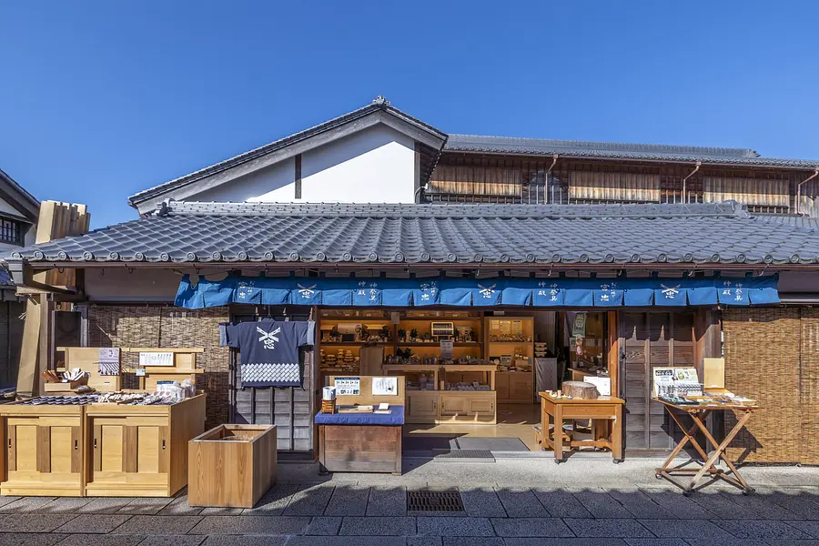 丈夫で通気性・保温性にも優れ、藍染めの粋な縞模様で有名な松阪木綿の専門店。松阪木綿の反物はもちろんのこと、異なる藍の色合いを組み合わせて作られたオリジナル商品がずらりと並びます。ブックカバーやコースターといった日用品、カジュアルな衣服などなど…。藍染のテディベアやおかげ犬のぬいぐるみもかわいく、目を引きます。世代を超えて愛されるグッズに生まれ変わった松阪木綿の世界に浸れるお店です。お土産にいろいろ買っちゃいそう。
