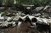岩戸脇の「恵利原の水穴(えりはらのみずあな)」から湧く清水は日本の「名水百選」にも選ばれ、多くの人が水を汲みに訪れます。