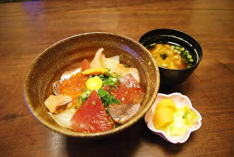お店のこだわりは、店主が市場や地元漁師から魚介類を自分の目で確かめて仕入れること。素材同士の相性を重視した「海鮮むつみ丼」は、丼の中央に「温泉卵」があるのが特徴。まず一つひとつのネタを楽しむのもよし、かき混ぜて「魚介類と卵のハーモニー」を味わうのもよし、さまざまな楽しみ方ができるのがうれしい。