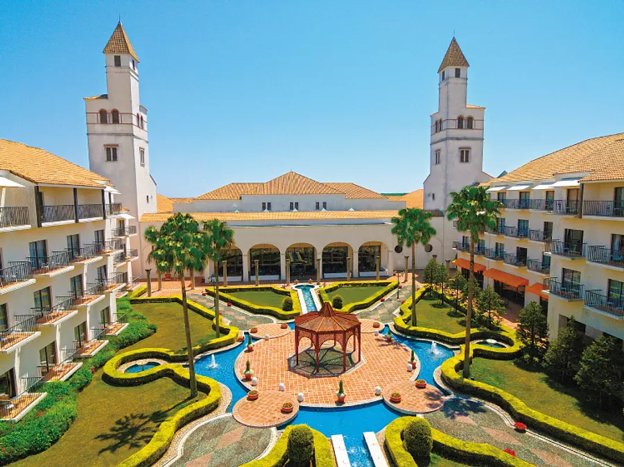 スペイン・アンダルシア地方の街並みをイメージした南欧気分溢れるリゾートホテル。「パルケエスパーニャ」や天然温泉「ひまわりの湯」が隣接し、ゆったりとしたリゾートライフを満喫していただけます。