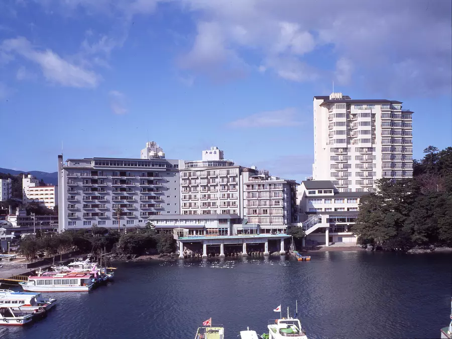 海の幸フランス料理と、本格的な会席料理が楽しめるホテルは全室スイートルーム。屋上庭園からは美しいリアス海岸をパノラマで望むことができます。