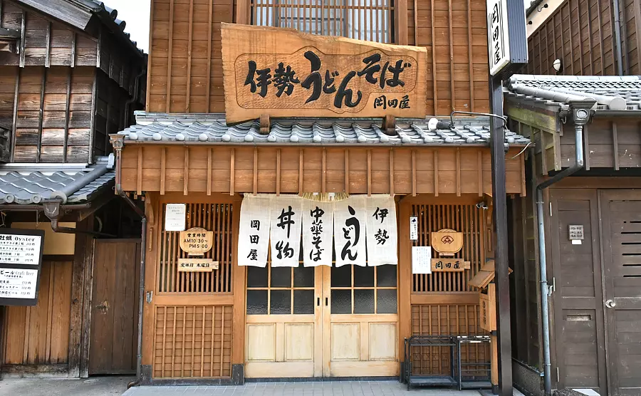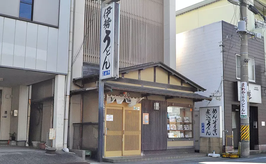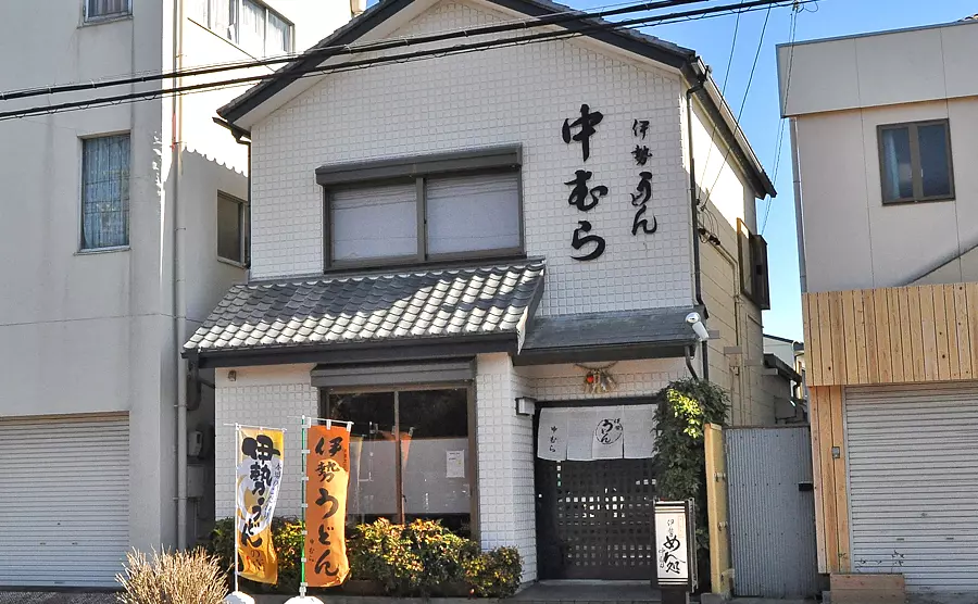 伊勢神宮 外宮駐車場すぐそばにある伊勢うどんの老舗「中むら」。江戸時代からうどん屋があったといわれるこの地で、大正5年に後を引き継ぐ形で創業。