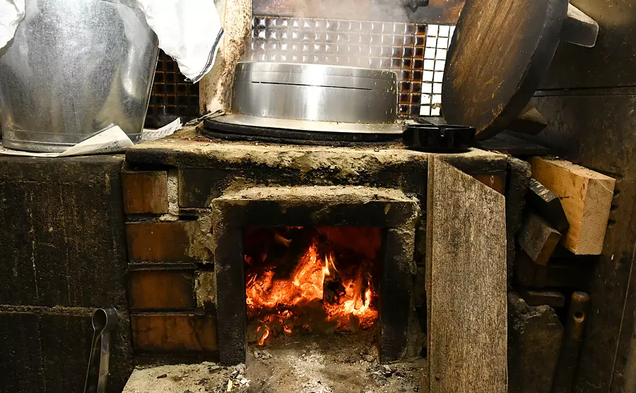 アジ・アゴ・イワシ3種類の煮干しとカツオ・ソウダガツオ2種類の鰹節・利尻産昆布をふんだんに使い薪窯で5時間じっくりと煮出した出汁に、熱々の鉄板を投入することで余分なえぐみやにおいを取り除き、しょうゆの香ばしい香りをつけて仕上げた特製ダレが自慢です。